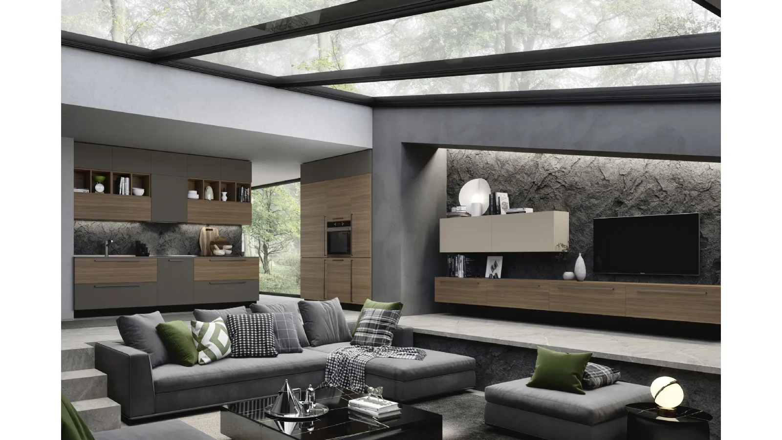 Furniture for the living room and modern equipped walls S75: discover the Spot Chloè 02 laminate model featured in the photo.