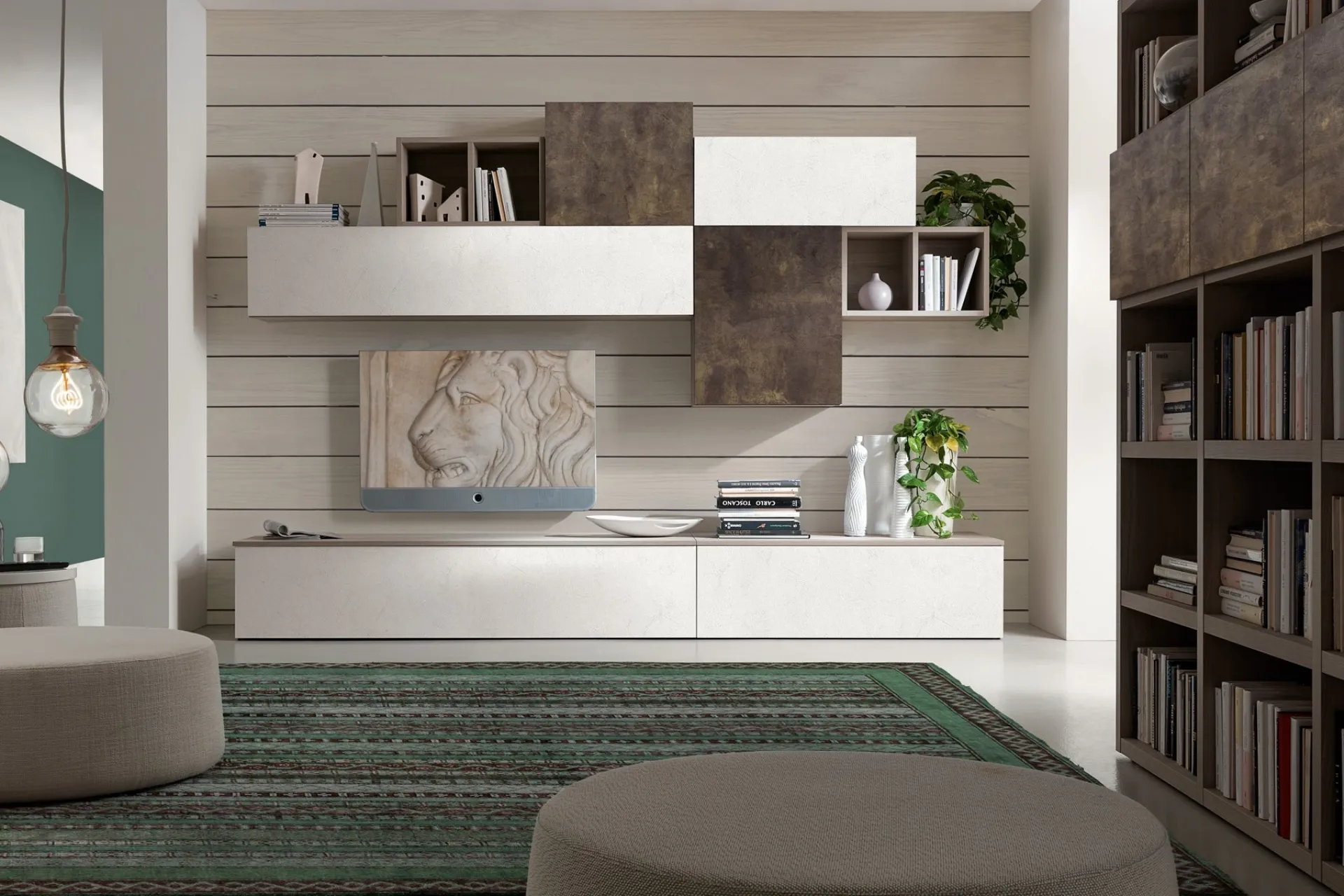 Quali sono i vantaggi di scegliere la parete attrezzata Supreme City 03 per il mio soggiorno?Scegliere Supreme City 03 significa optare per una soluzione versatile e funzionale, con ante battenti, ribalta o push-pull. La sua modularità e le finiture coordinate permettono di creare un ambiente armonioso e moderno.