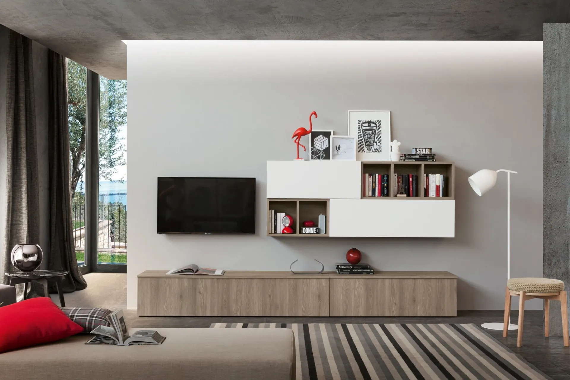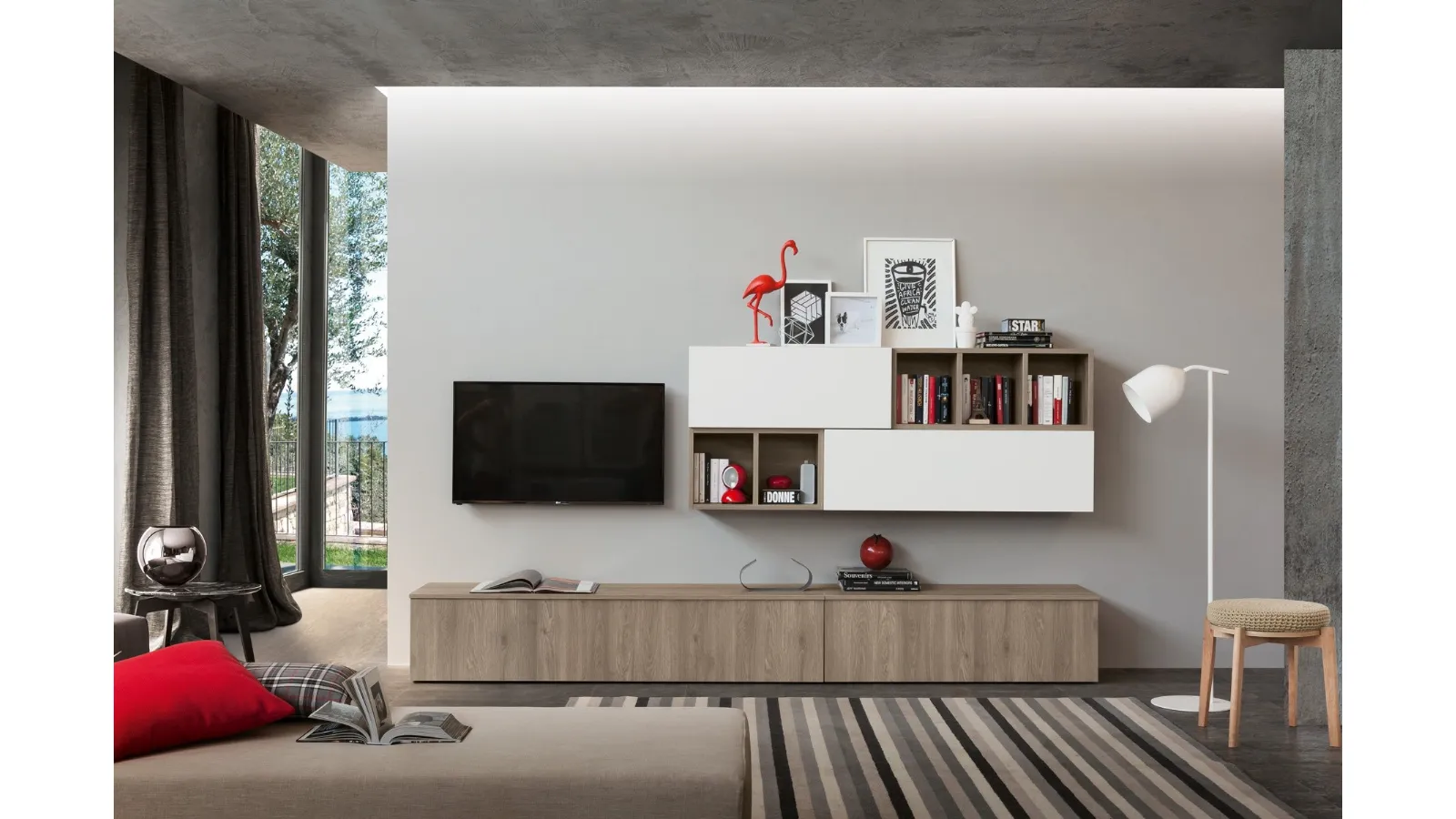 Furniture for the living area and modern Wall Units S75: discover the Supreme Ingrid Rovere 01 model in melamine featured in the photo.