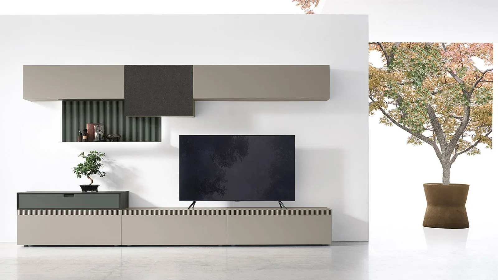 The Tomasella TIME UNIT TI 109 wall unit in the photo, with a melamine finish, solves the most particular space and style living problems without sacrificing aesthetic research. Partly bookshelves, partly containers and displays: wall units are ideal for optimizing a dynamic and functional space. Even in a small living room, this type of furniture manages to organize spaces at best, optimizing every corner and ensuring the typical customizability of modern solutions. If you are looking for space-saving and customizable furniture, contact us and get information on the best manufacturers' Home Furnishing. This solution represents all the excellence that the brand ensures thanks to years of professionalism and great passion in the field of furniture and design.