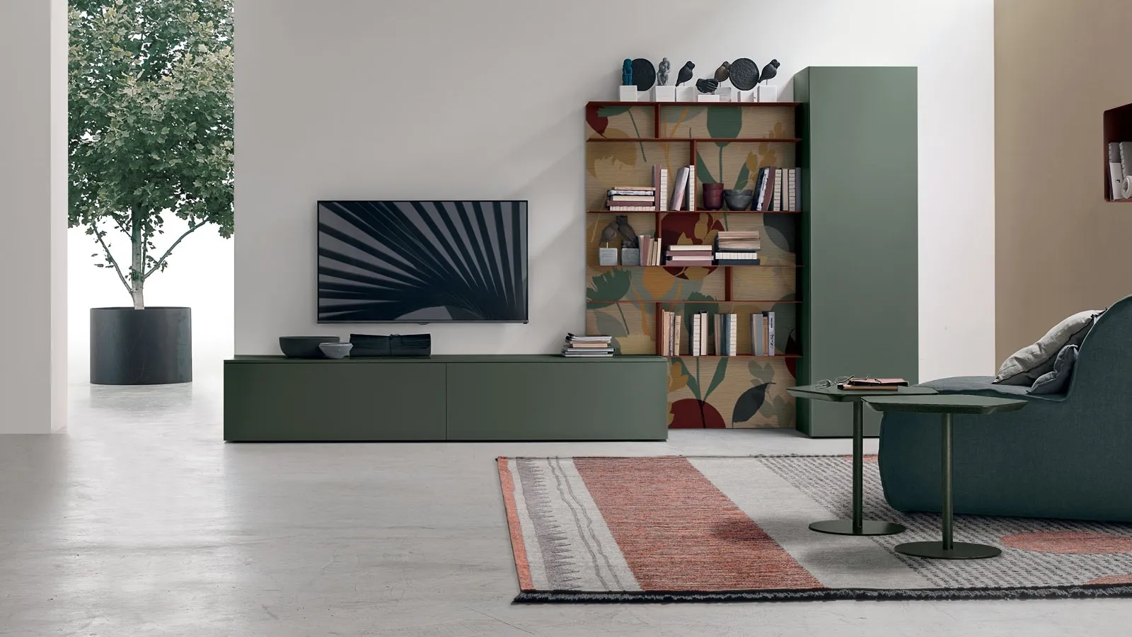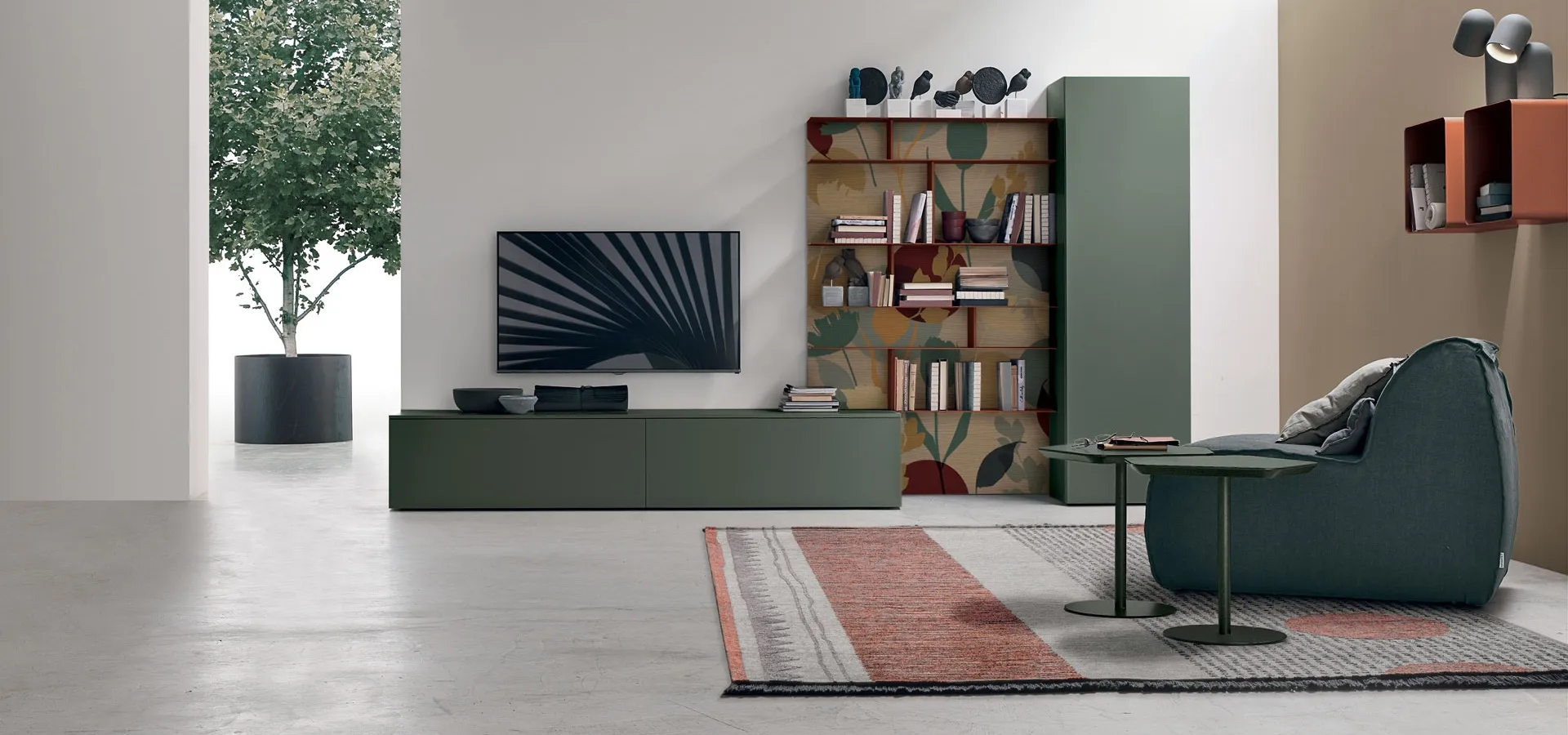 Atlante UNIT AT137 Equipped Wall by Tomasella: discover one of the most original matt lacquered solutions to furnish the living room with us