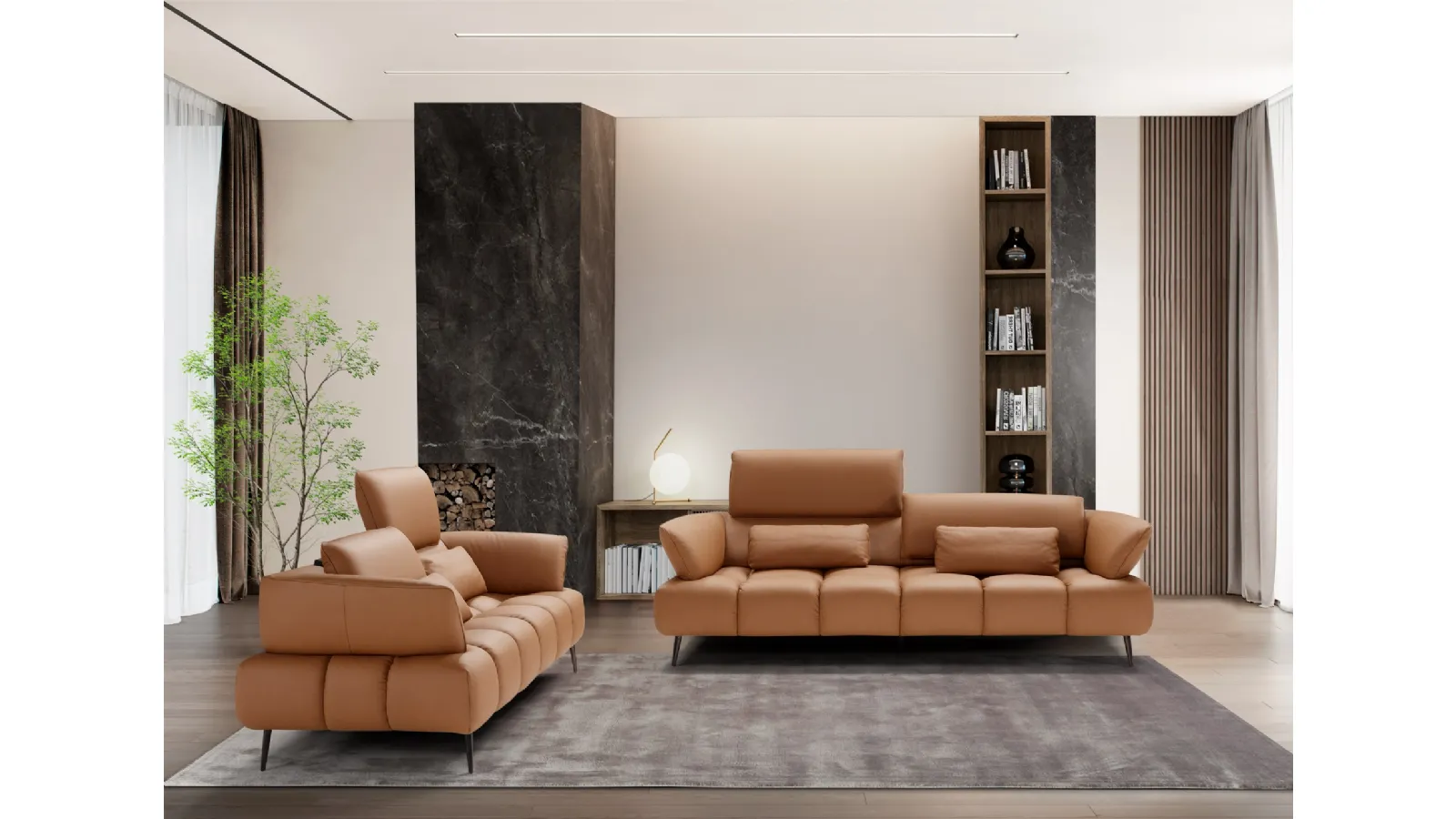 Linear living room in Ambra leather by Franco Ferri