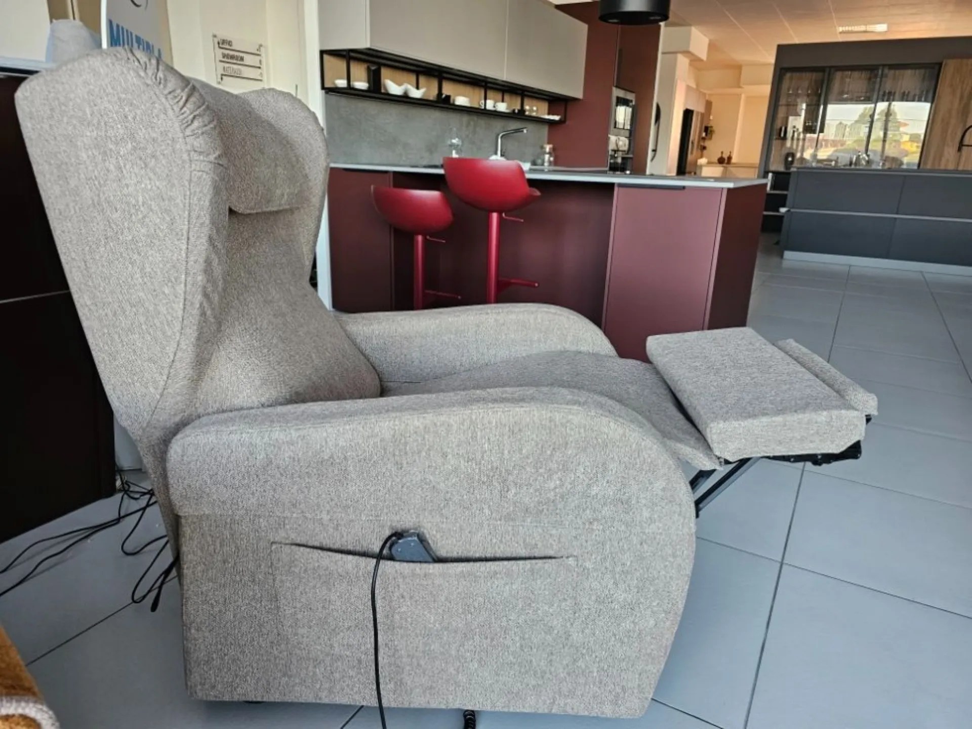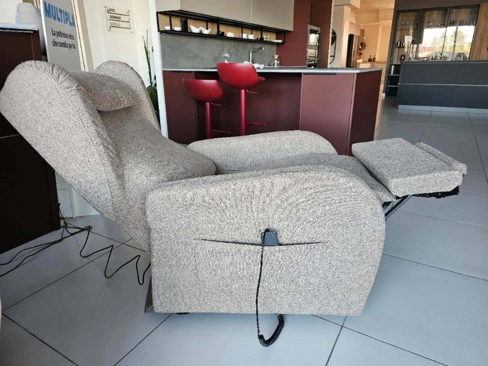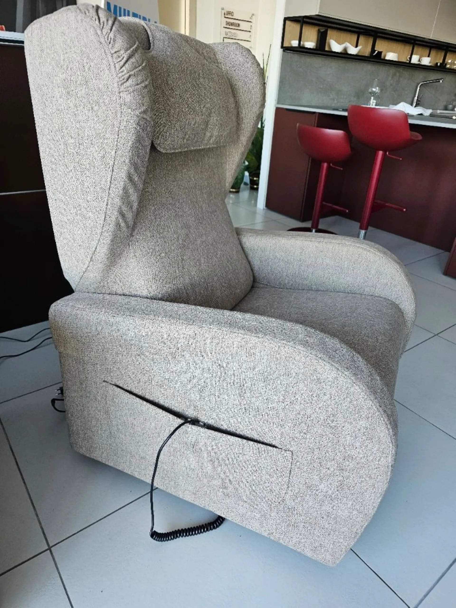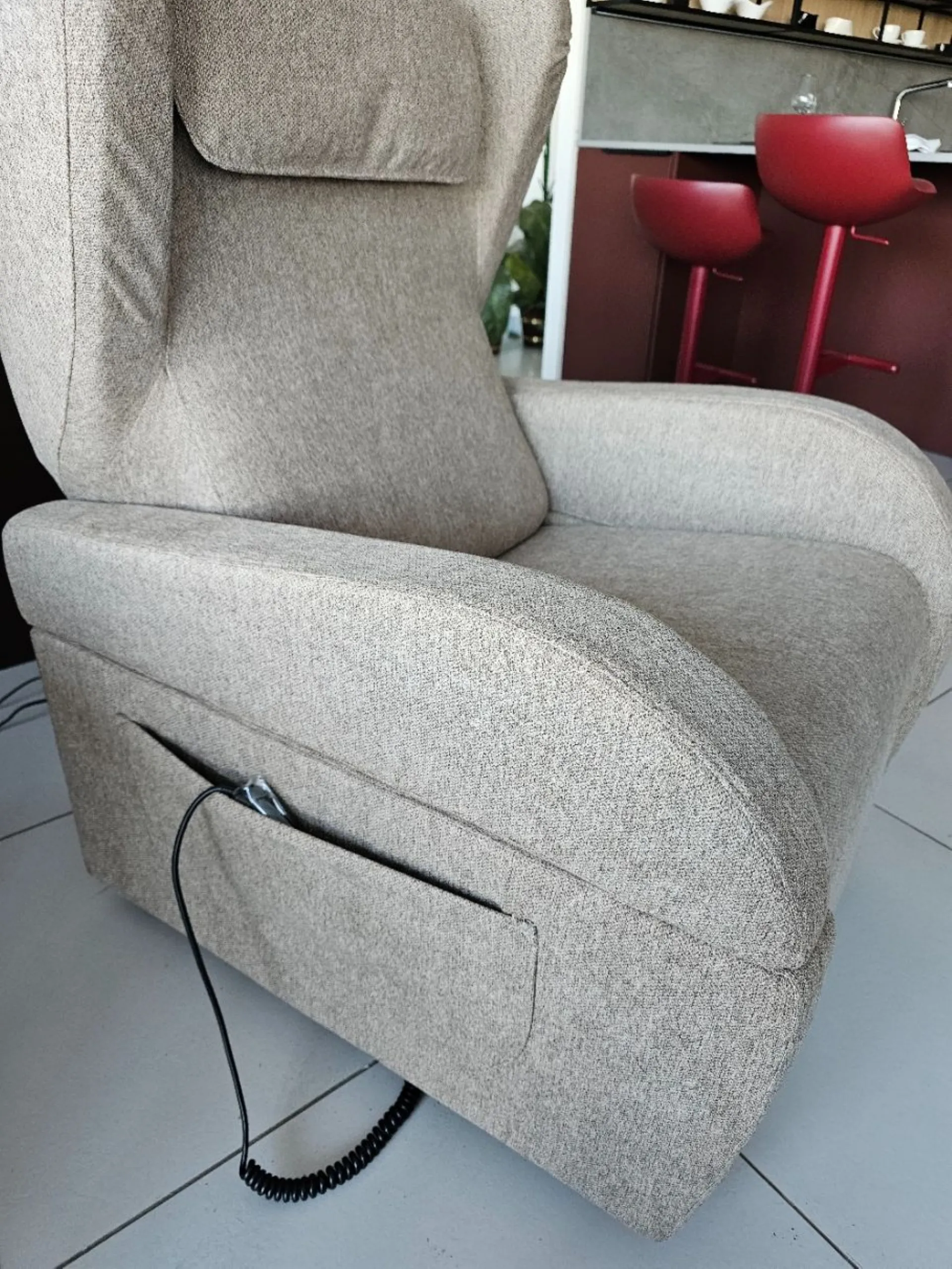Translation: Relax armchair model ANNA PLUS measuring cm L.69xW.82xH.111 with removable fabric upholstery in art.BULL col.3. This model comes with removable armrests, double footrest, armrest covers, and roller kit. It is a medical device eligible for a 19% tax deduction and can be purchased with a reduced VAT of 4% for individuals with disabilities exceeding 80%. Product ready for immediate delivery. Contact us for further information.