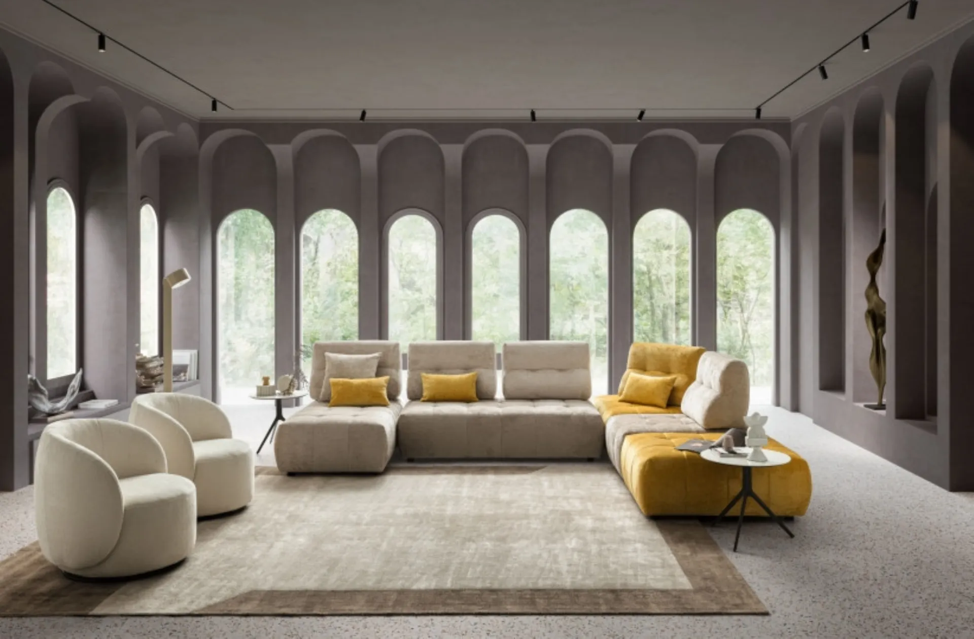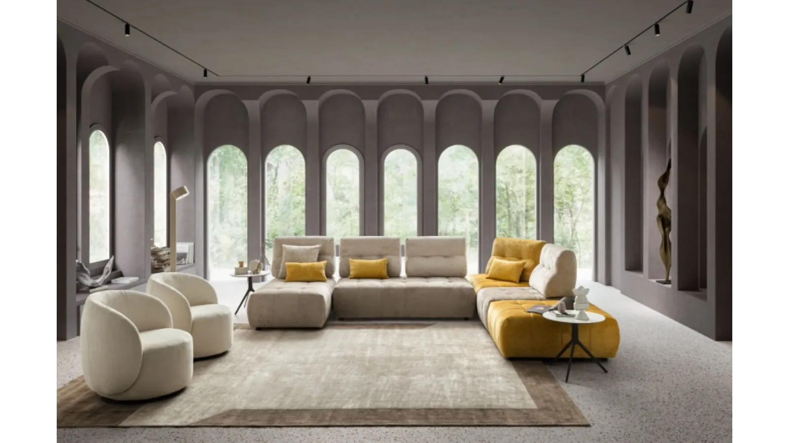 The living room is the centerpiece of the living area in every home, with upholstered furniture being the elements around which you can enjoy moments of rest and socialization. Living rooms are truly essential areas of the living room, to be carefully decorated by placing sofas, armchairs, and ottomans. Le Comfort, a leader in sofa manufacturing, has created an elegant and refined fabric covering for the model in the photo. Discover a myriad of sectional upholstered furniture from the best brands and enhance the living area you have always desired. Le Comfort's modular sofa Byron: let yourself be tempted by our proposals of design sofas and armchairs that can guarantee comfort, functionality, and style in your living room.