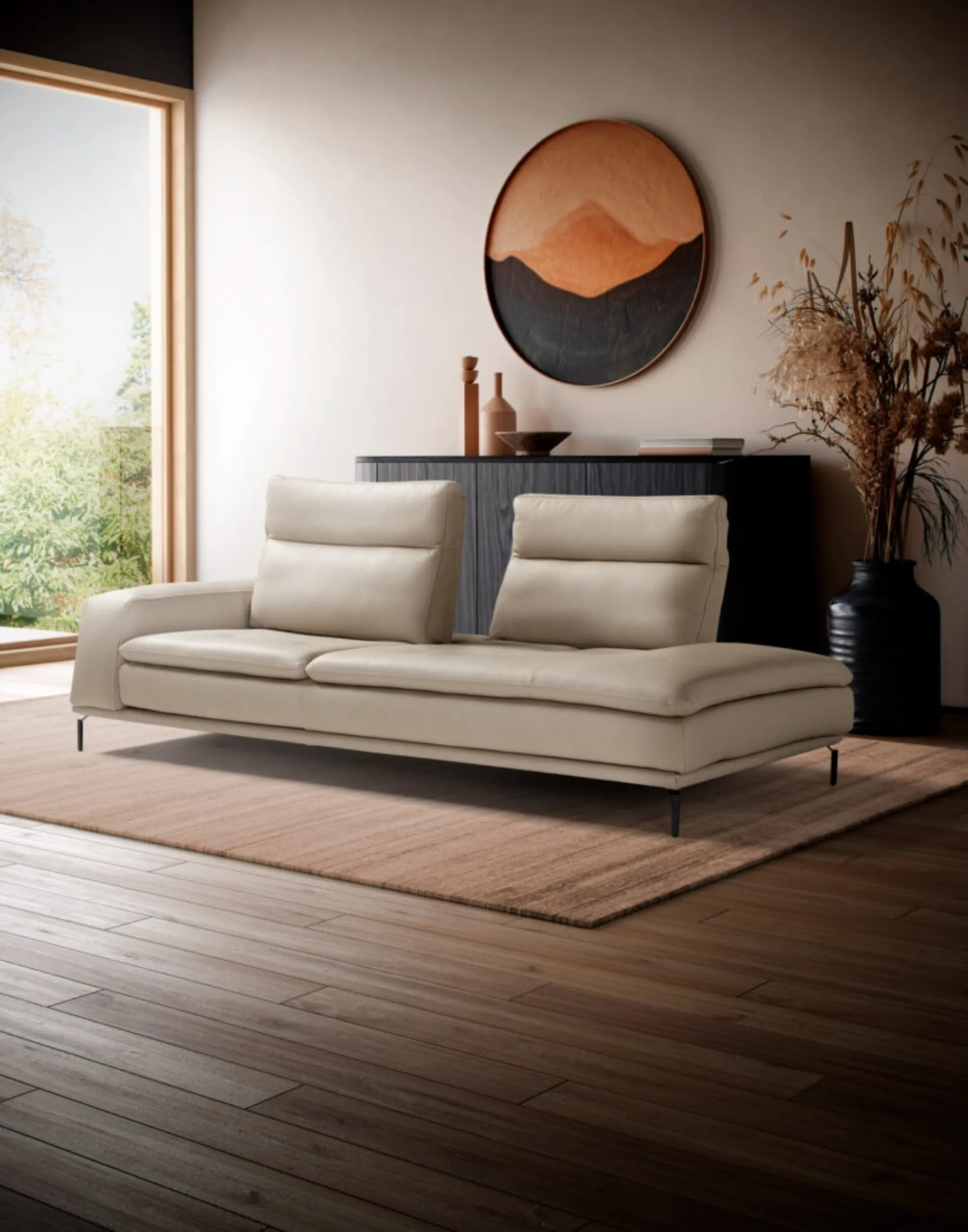 Denise sofa by Franco Ferri: be inspired by our selection of modern sofas and armchairs that can guarantee comfort, functionality, and style in your living room. Discover a wide range of linear upholstered items from the best manufacturers and enhance the living room you have always dreamed of. Franco Ferri, a leader in sofa production, has designed an elegant and refined leather covering for the model in the photo. Sofas are a truly essential element of the living room, to be carefully organized by placing sofas, armchairs, and ottomans.