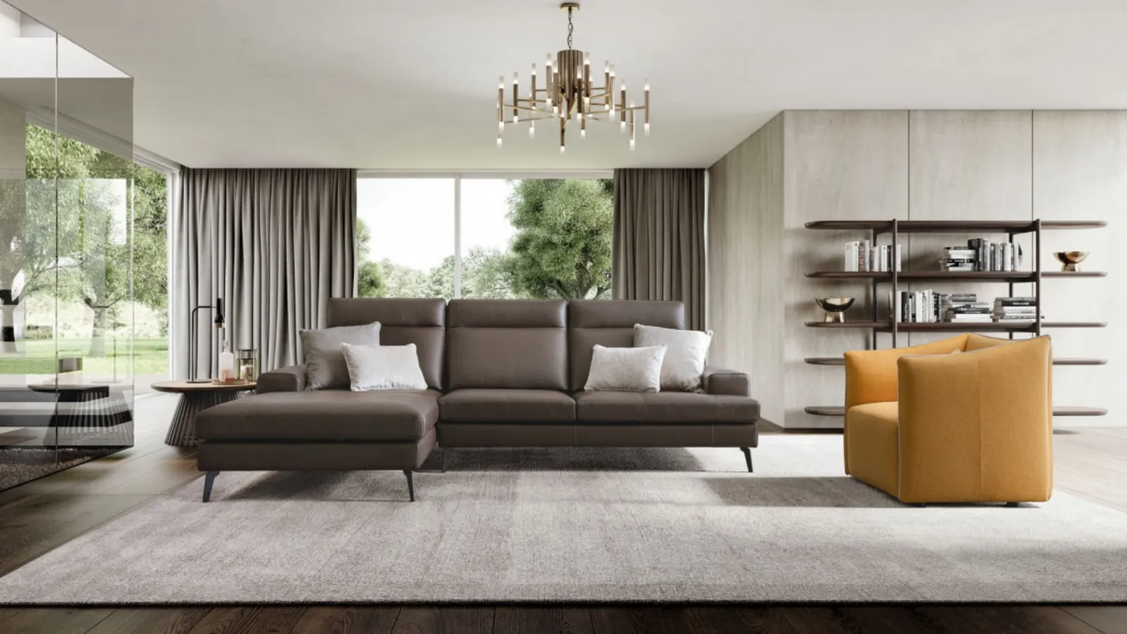 Emmet sofa with peninsula by Le Comfort : let yourself be captivated by our proposals for design upholstered furniture that can ensure comfort, functionality and style in your living room. Discover a wide range of upholstered furniture with peninsula of the best brands and enhance the living room you've always wanted. The Salotti represent a truly essential part of the living room, to be carefully organized by placing sofas, armchairs and poufs. The sitting room is the protagonist of the living room of every home, the upholstered items are furnishing modules around which you can enjoy moments of rest and conviviality. Le Comfort, leader in the production of sofas, has created an elegant and sophisticated leather covering for the model in the image.