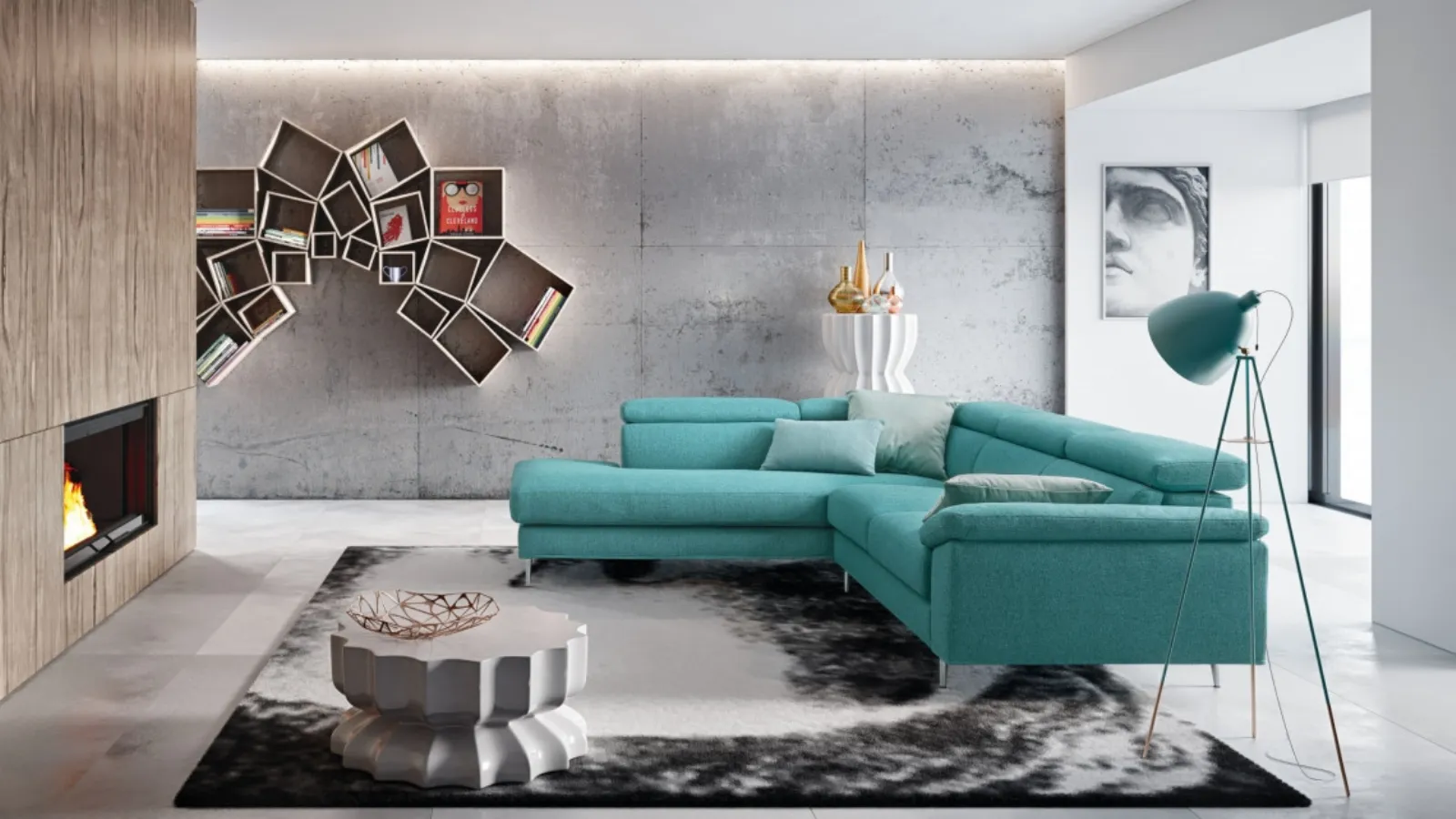 Discover the modern living rooms covered in fabric: Greta is one of the corner sofa proposals by Le Comfort