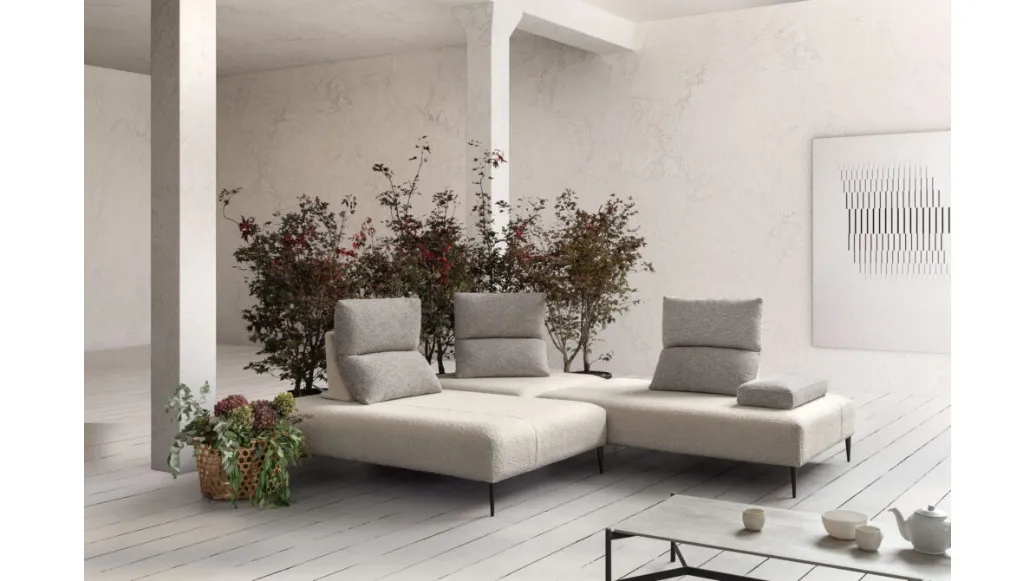 The living room is the center of the living area in every home, upholstered furniture is furnishing elements around which you can enjoy moments of relaxation and conviviality. Living rooms constitute a truly essential feature of the living area, to be carefully furnished by placing sofas, armchairs, and ottomans. Samoa, a leader in sofa production, has created an elegant and refined fabric covering for the model in the photograph. Discover a wide range of upholstered furniture with a peninsula from the best brands and enhance the living room you have always desired. Jest Special sofa with peninsula by Samoa: be inspired by our proposals of design upholstered furniture that can guarantee comfort, practicality, and design in your living room.