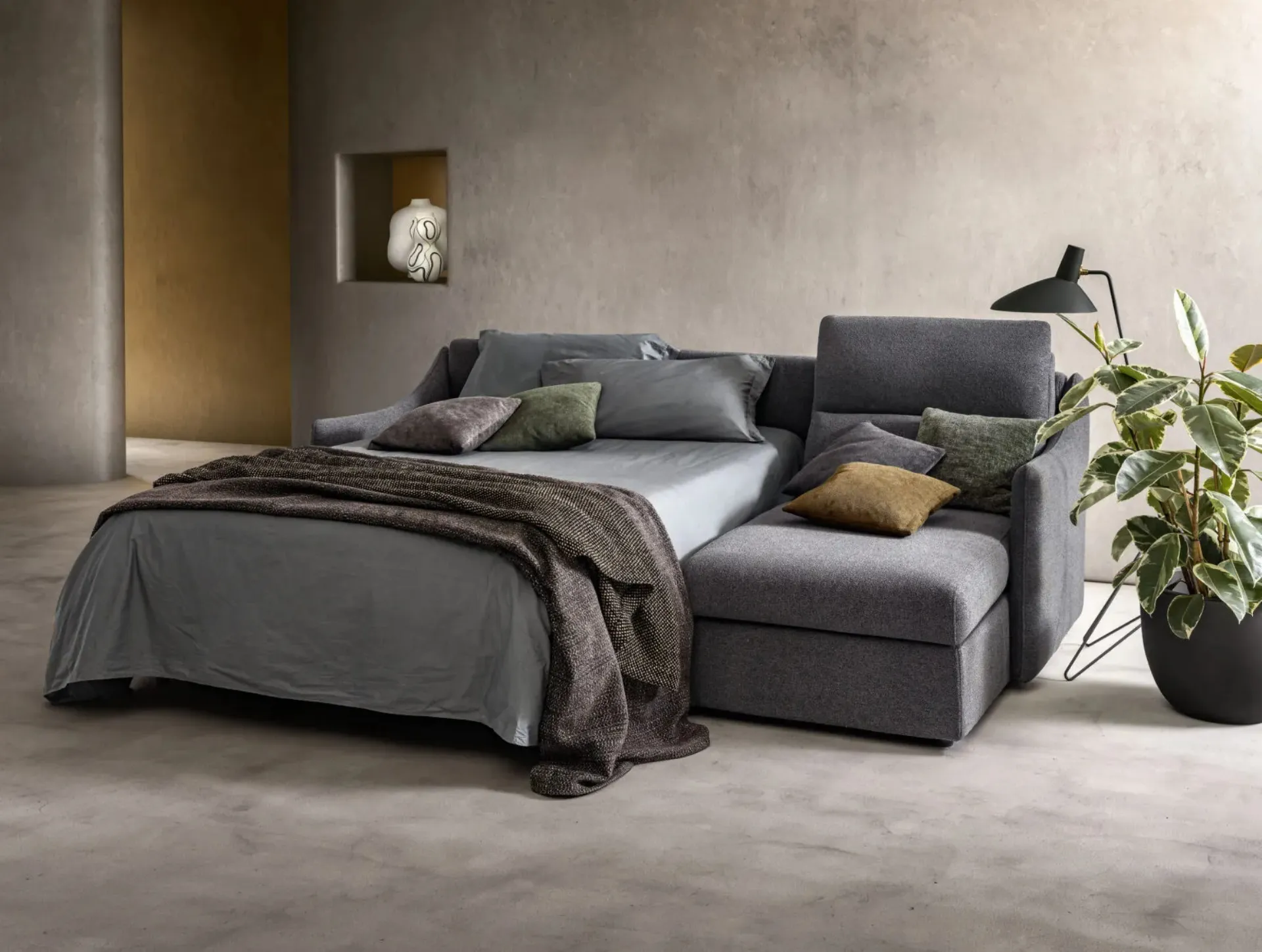 The living room is the center of every home's living space, with upholstered furniture being the central pieces around which to spend moments of rest and socializing. Discover a wide range of upholstered furniture with beds from the best manufacturers and enhance the living area you have always desired. Logan Sofa Bed by Samoa: be inspired by our proposals for modern sofas and armchairs that can ensure comfort, functionality, and style in your living room. Samoa, a specialist in the creation of sofas, has designed an elegant and sophisticated fabric covering for the model in the image.