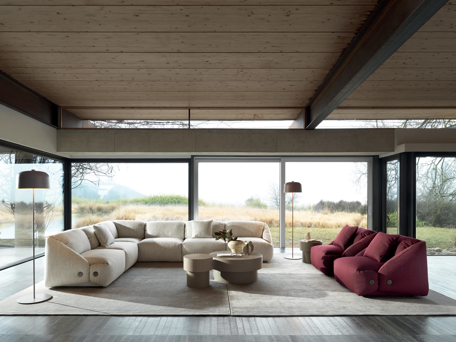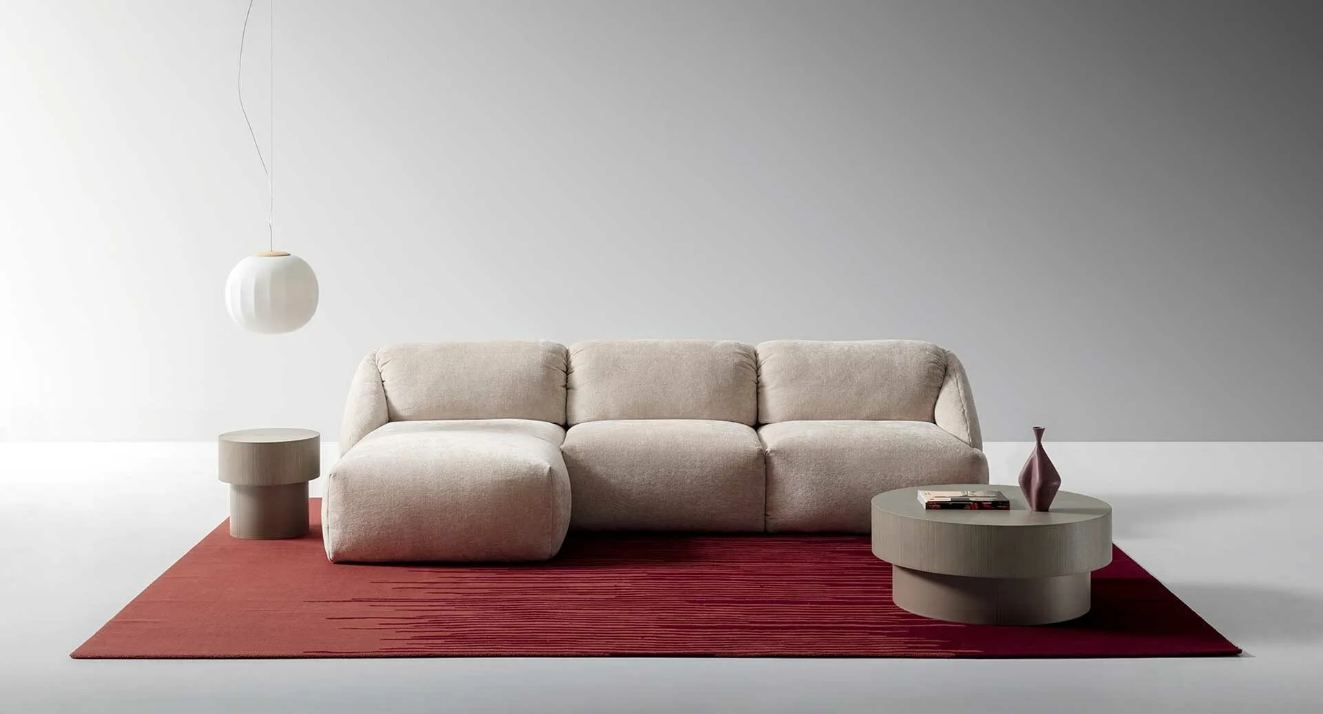 The Ditre Italia catalog offers several ideas for decorating interiors with a focus on functionality and aesthetic content, putting your comfort at the center. The company's collection of sofas presents different original ideas for decorating the living room with functionality, comfort, and style. If you desire sofas and armchairs with a peninsula like the model in the photograph, characterized by volumes that invite you to enjoy your moments of rest. Our living rooms are designed to be paired with accessories of all kinds, such as tables, lamps, and floor lamps, or in combination with additional fabric sofas.