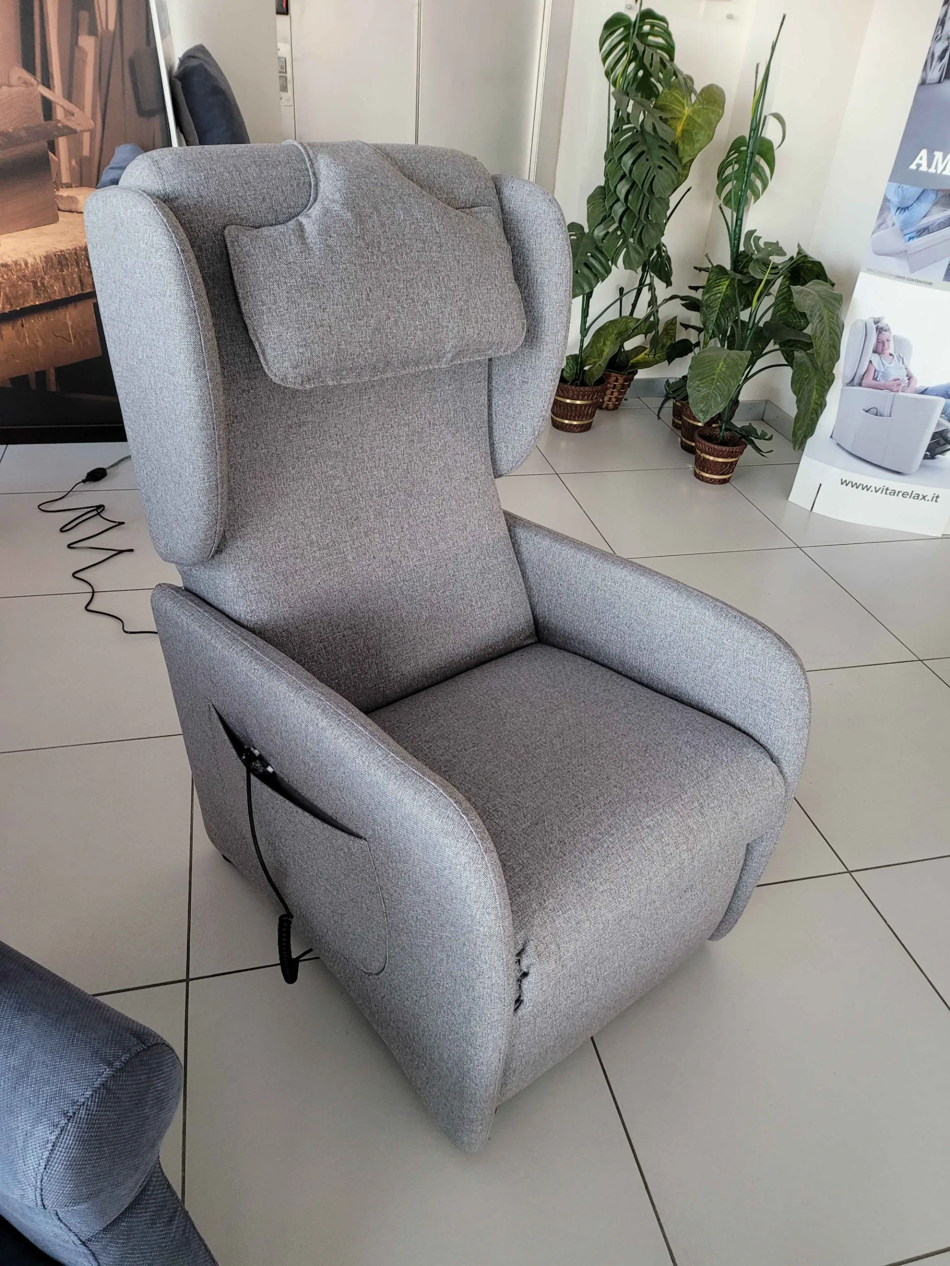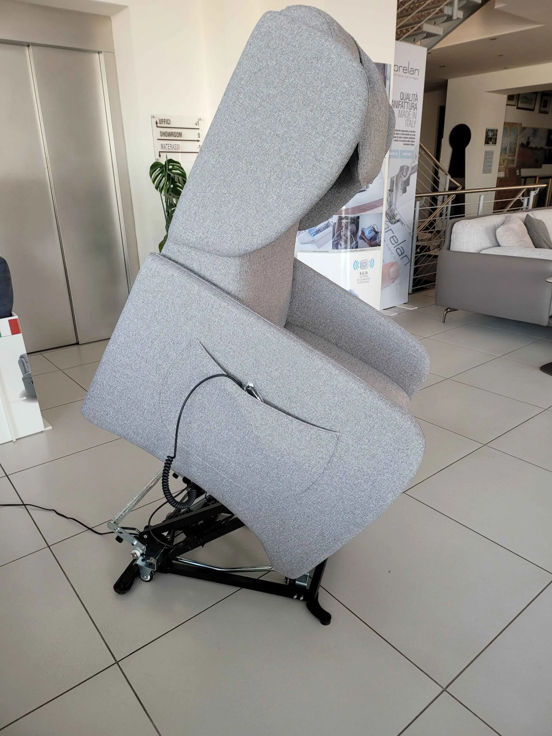 Compattaemorbida,Oriettaèlapoltronanataperavereunastrutturastraordinariamentesolidaeoffrireunacomoditàincredibilmenteavvolgentealminimodell’ingombro.Infattipassacomodamentedaportelarghe70cm.Raggiungelaposizionedirelaxconilmovimentoindipendentedelloschienaleedellapedieraperpoterregolareinmodoautonomolaposizionedimassimocomfort.Ilpoggiapiedipuòesserequindisollevatoinqualsiasimomento,senzaabbassareloschienale,consentendoquindidiottenereunaperfettaposizionedavantiallaTV.DisponeanchediunmovimentoLiftcheconsentediassumerelaposizioneerettaapersonecondifficoltadideambulazione.Inoltreèpresenteilkitrollerchepermettedispostarelapoltronacomodamente,ancheconunapersonasedutasopra. The upholstery fabric&is gray. The seat&is very comfortable and in memory for the absolute best comfort! **