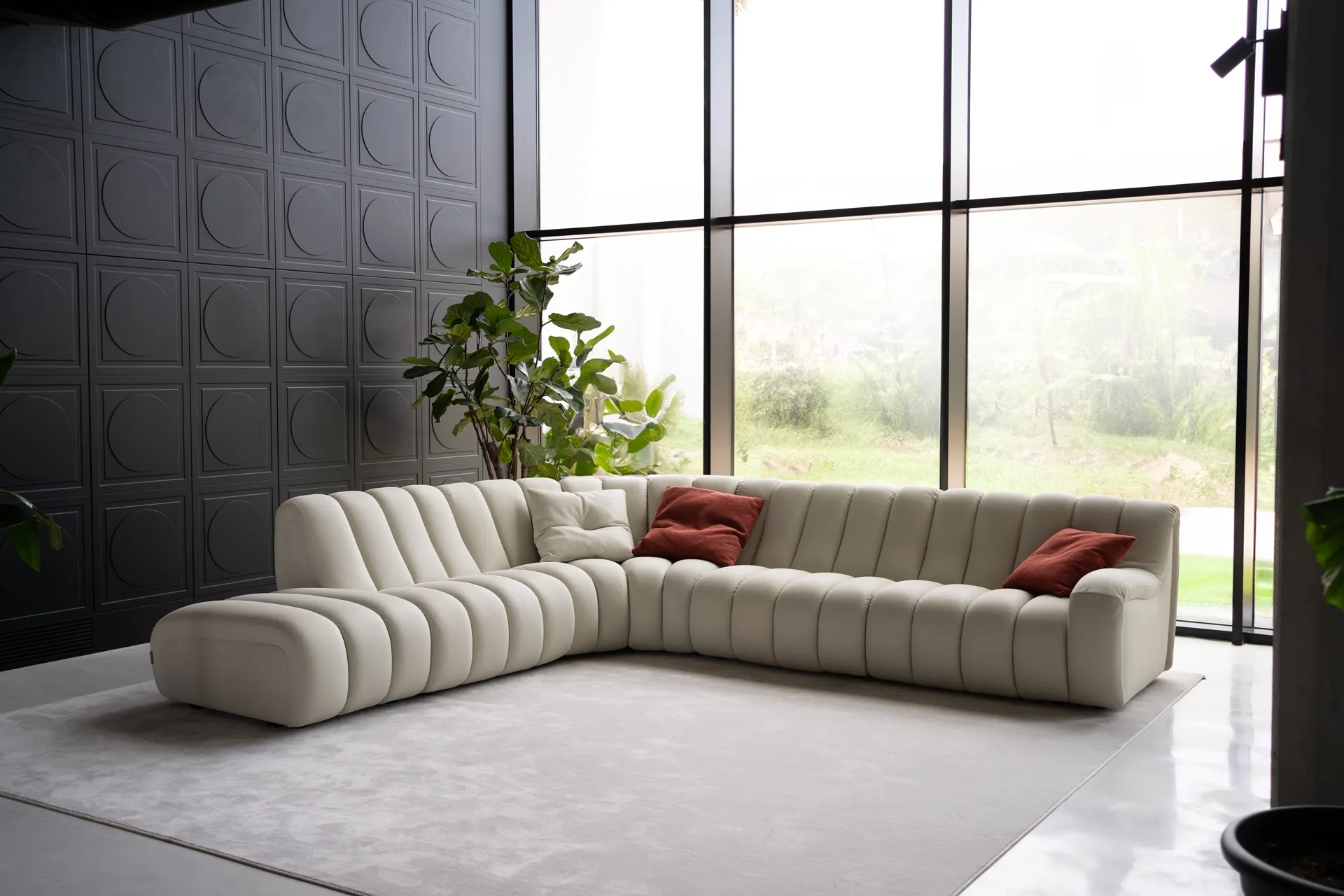Discover our line of designer living rooms: choose Franco Ferri corner sofas like the Scervino mode