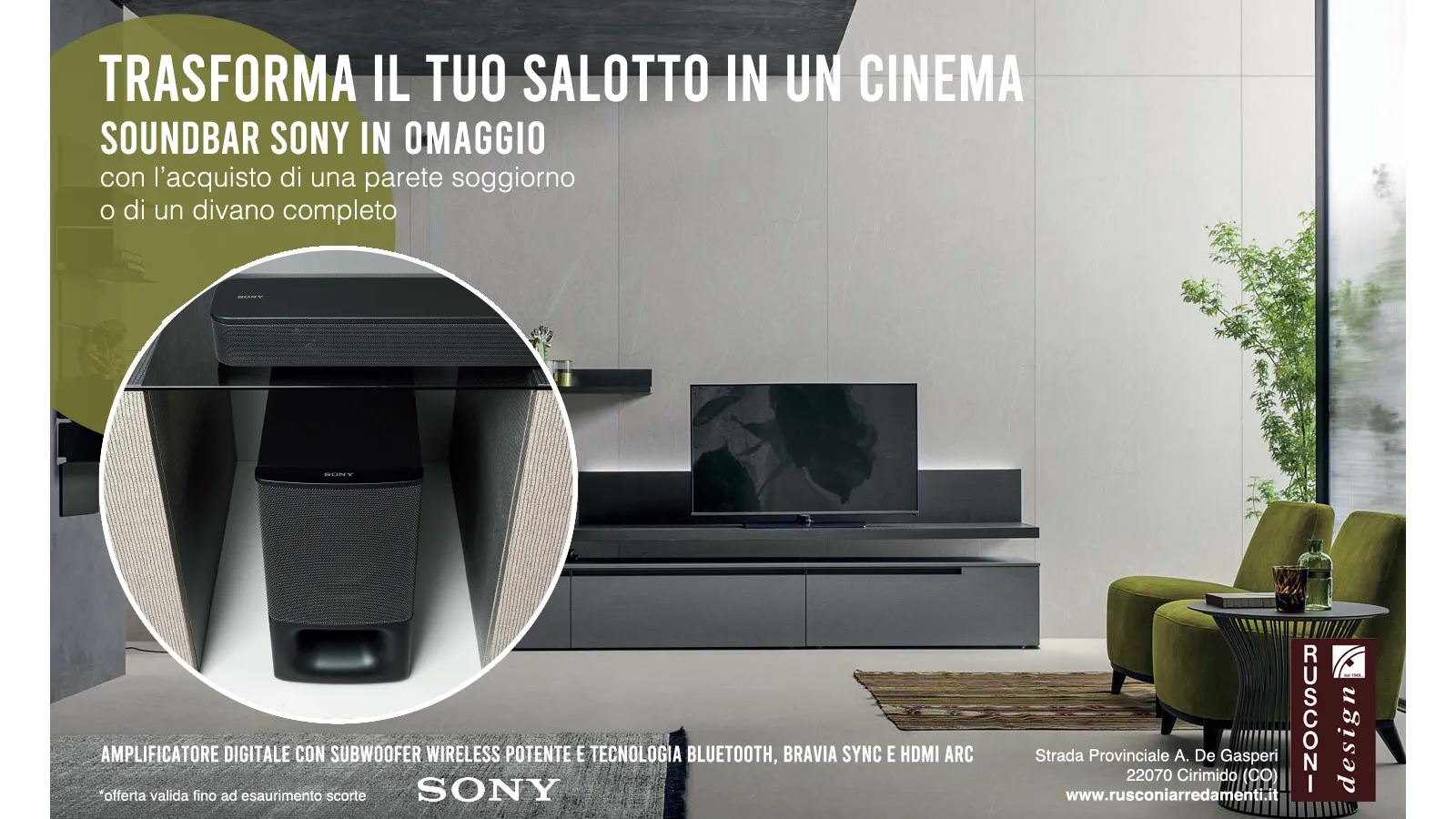 What are you waiting for? Come to us and buy a living room wall or a sofa and you will immediately receive the fantastic SONY Soundbar to transform your living room into a fantastic cinema!