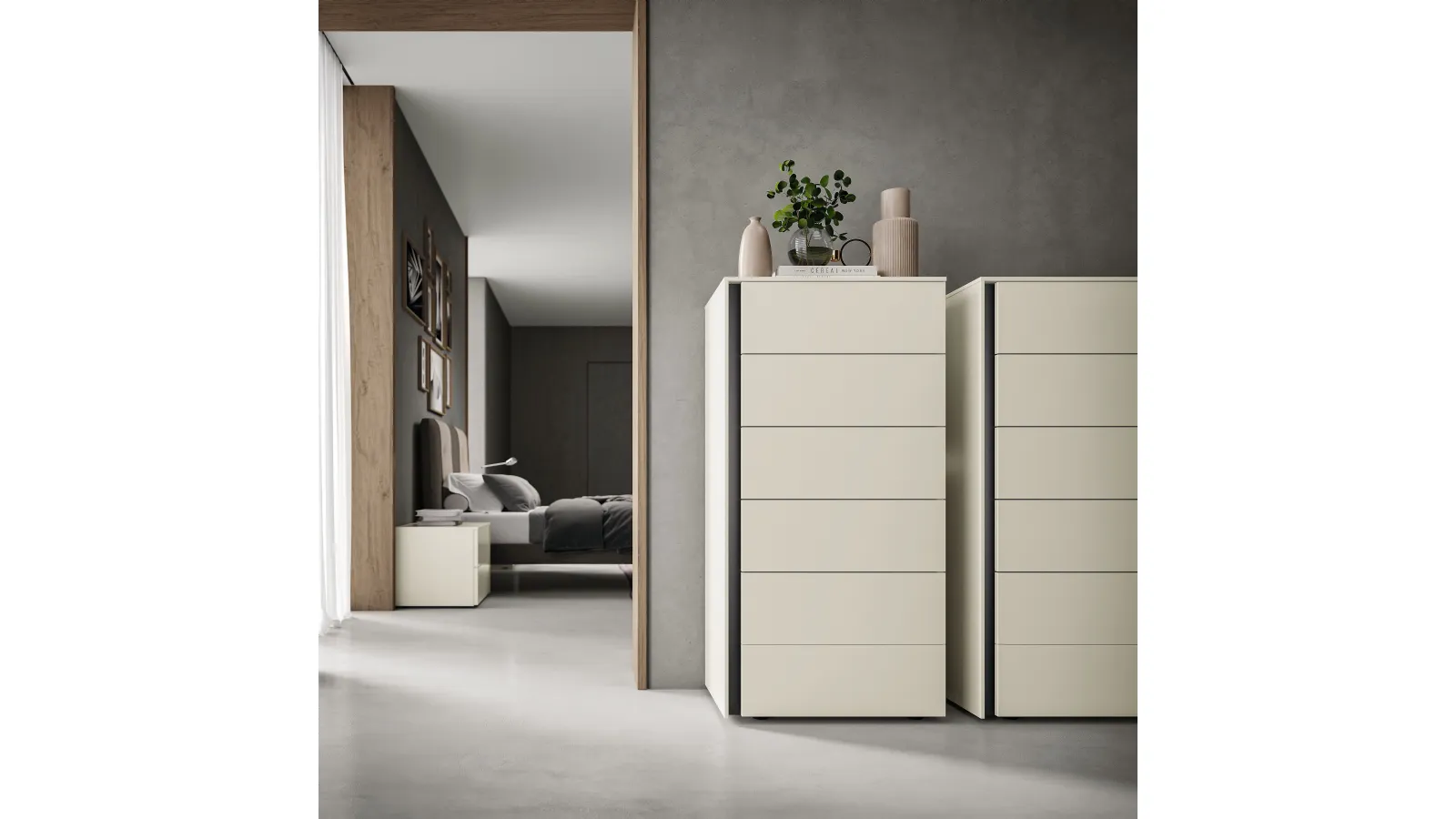 Bedside tables are some of the essential furniture and accessory items in every bedroom, as they allow you to complete the spaces making the most of every corner. Get information about our collection of bedroom sets from the best brands to furnish the spaces with a unique style. The matte lacquered models from the Spagnol Mobili brand, a leader in the production of wardrobes and bedside tables, allow you to create custom combinations or have features in deliberate contrast with the rest of the furnishings. Spagnol Mobili's Arco Chest of Drawers: it is a type of polyhedral container capable of providing functionality and great aesthetic value in modern spaces. Thanks to these furnishing objects, we can arrange necessary small items or display accessory elements.