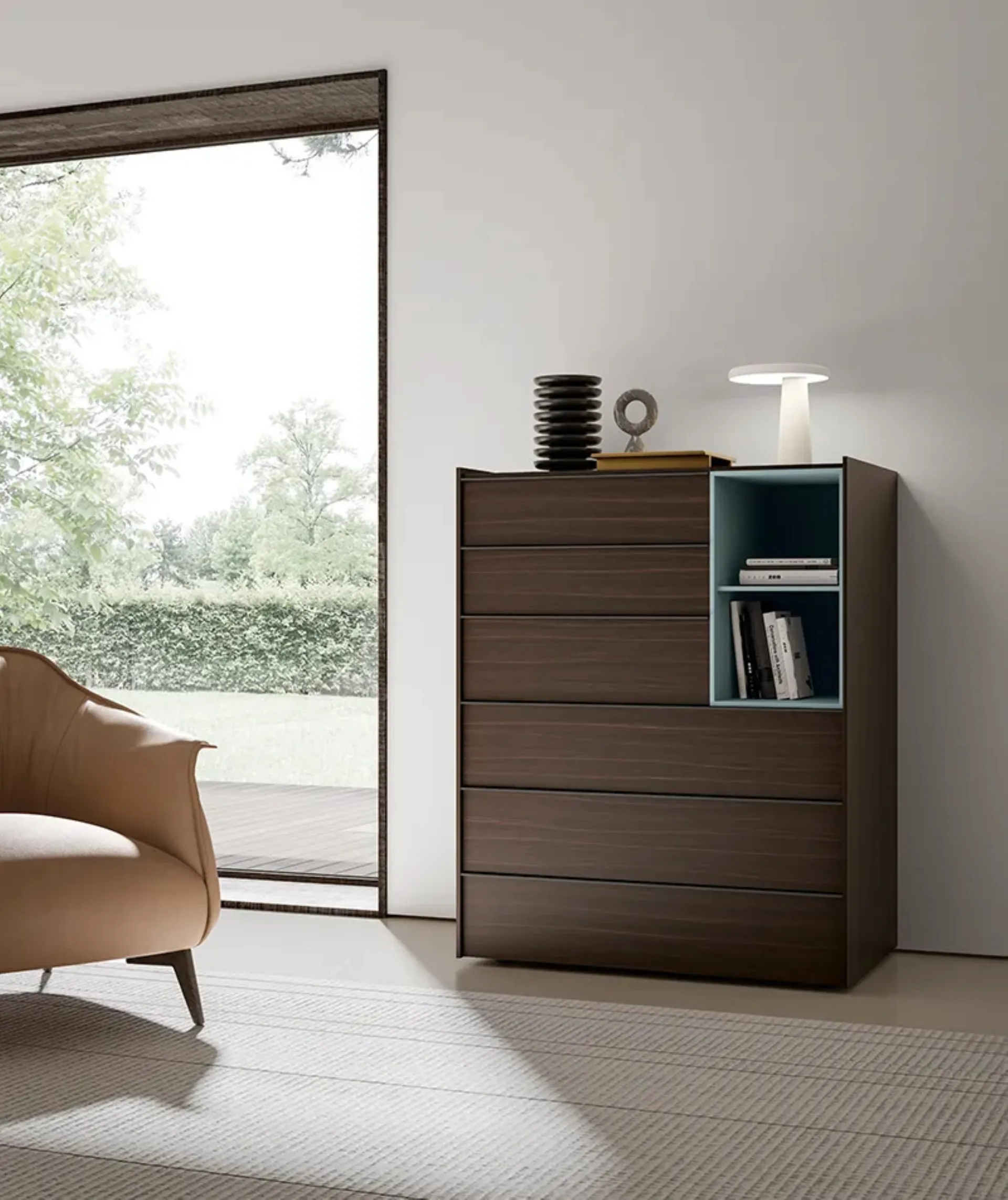At our store, you will find a wide range of modern furniture and accessories from the well-known and renowned brand, specializing in the production of Home Furnishings for the sleeping area. Bedside tables, dressers and bedroom sets can be coordinated with the bed and wardrobe or can be in clear and intentional contrast with them: the purchase will be based on the objective availability of space and the search for a balanced final effect. The Adok Stream Chest of Drawers is one of the most exclusive solutions capable of adding an extra touch of style to the room, using high-quality materials.