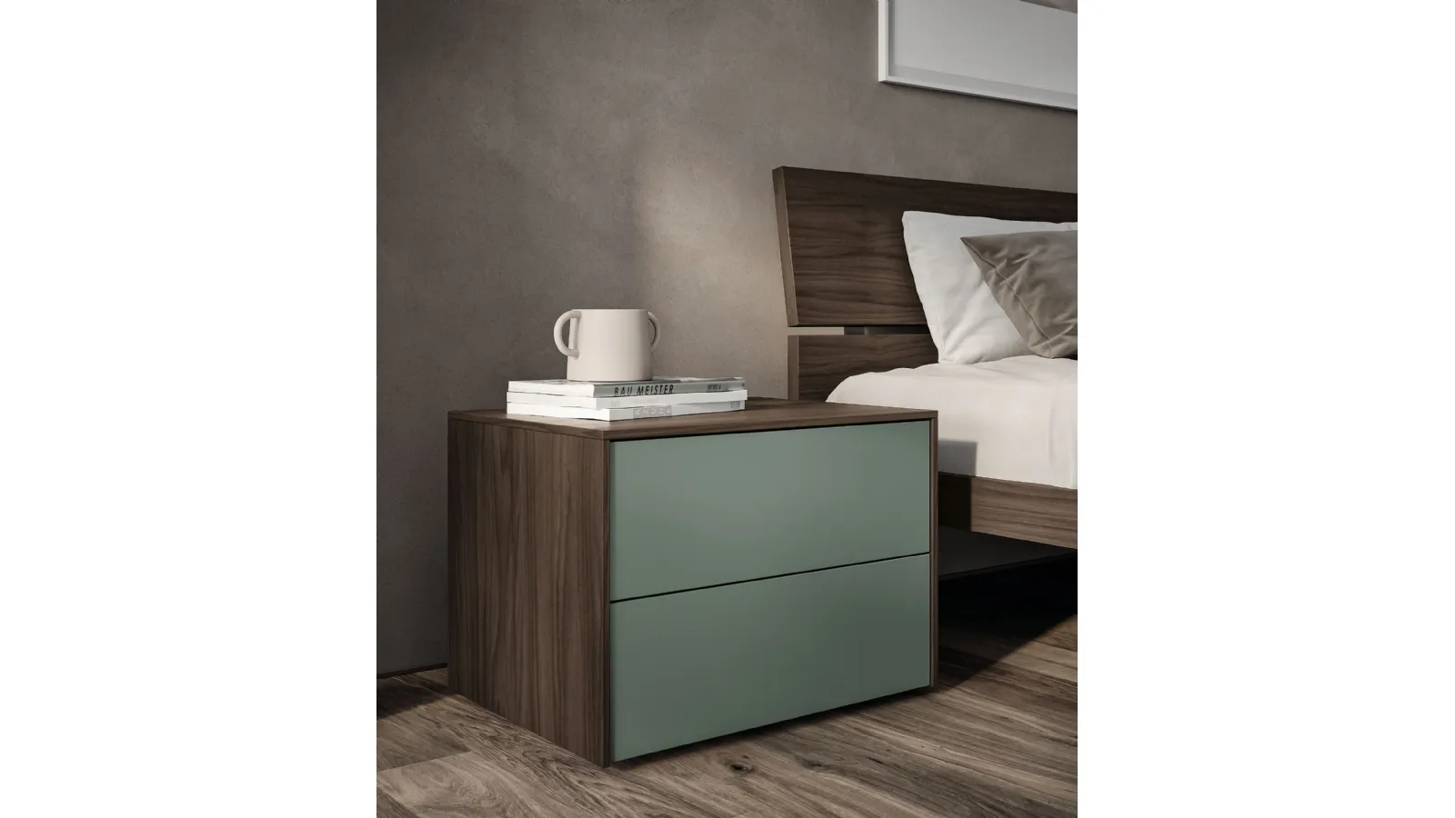 Spagnol Mobili Bedside Table: contact us and discover more about our furnishing proposals and decorate your room as you imagined. Optimize your interiors by choosing coordinated furniture compositions or create unique combinations of style and colors with the furniture and accessories catalog for the bedroom that we offer, such as the model in matte lacquer visible in the photo, also customizable. The bedroom also includes bedside tables: essential furniture for storing useful items and providing multi-purpose support surfaces. With our modern bedroom sets by Spagnol Mobili, a specialist in home furnishings for the bedroom, you can create the room of your dreams.