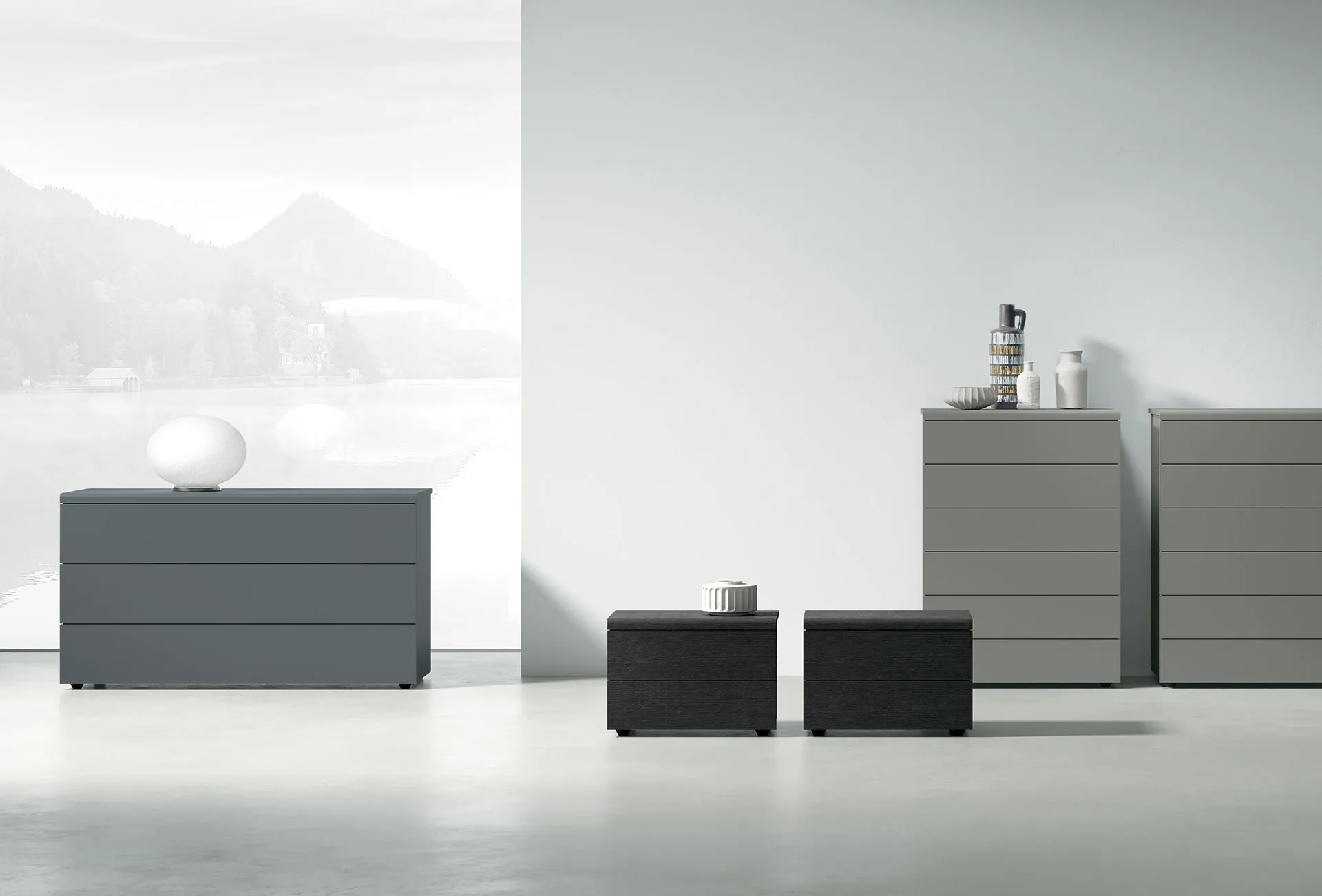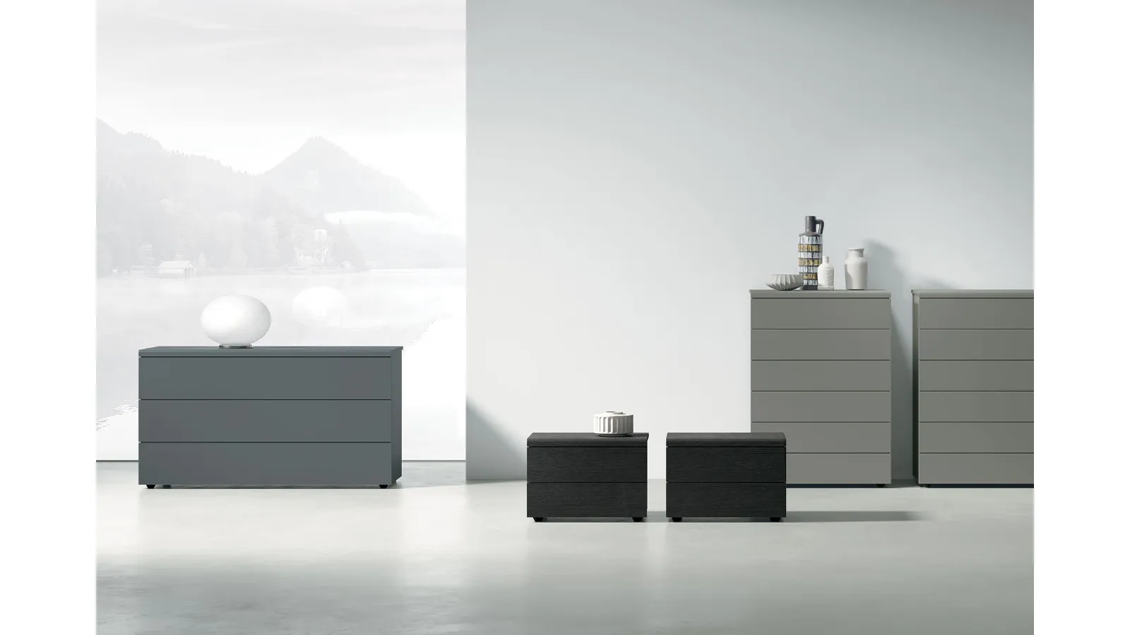 Bedside tables and night groups in matt lacquer for modern environments: discover the Cooper Night