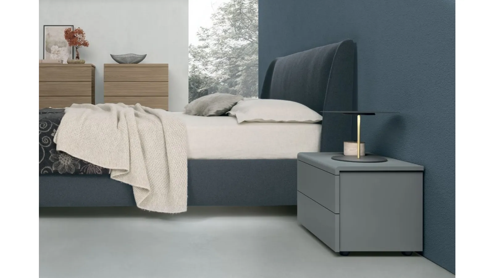 Bedside tables are furnishings capable of completing the bedroom by providing a definitely useful and versatile surface. First choice materials and excellent craftsmanship for the Cooper Night Group by Tomasella in matte lacquer, available in store along with the brand's other different offers, to make the resting area an environment that reflects your personality. Wondering how to combine beds, wardrobes, and bedside tables? With the Tomasella model shown in the photo, you will have a piece of furniture designed for a place with modern influences.