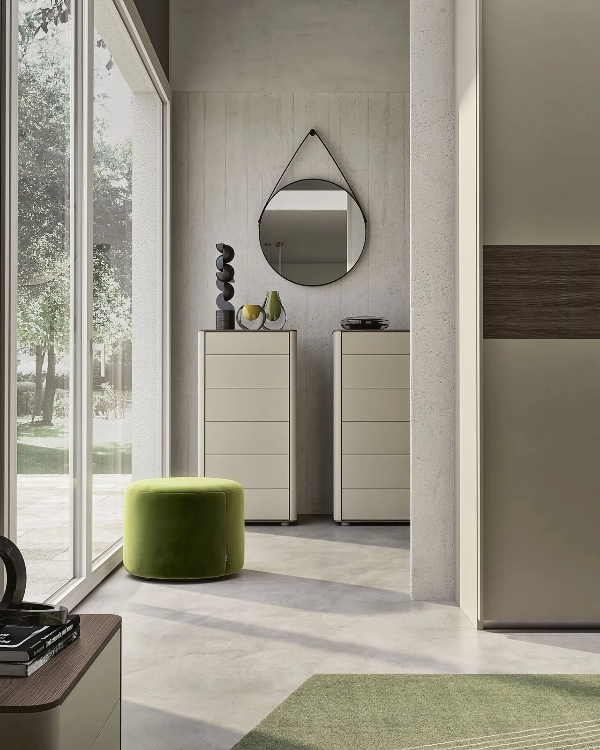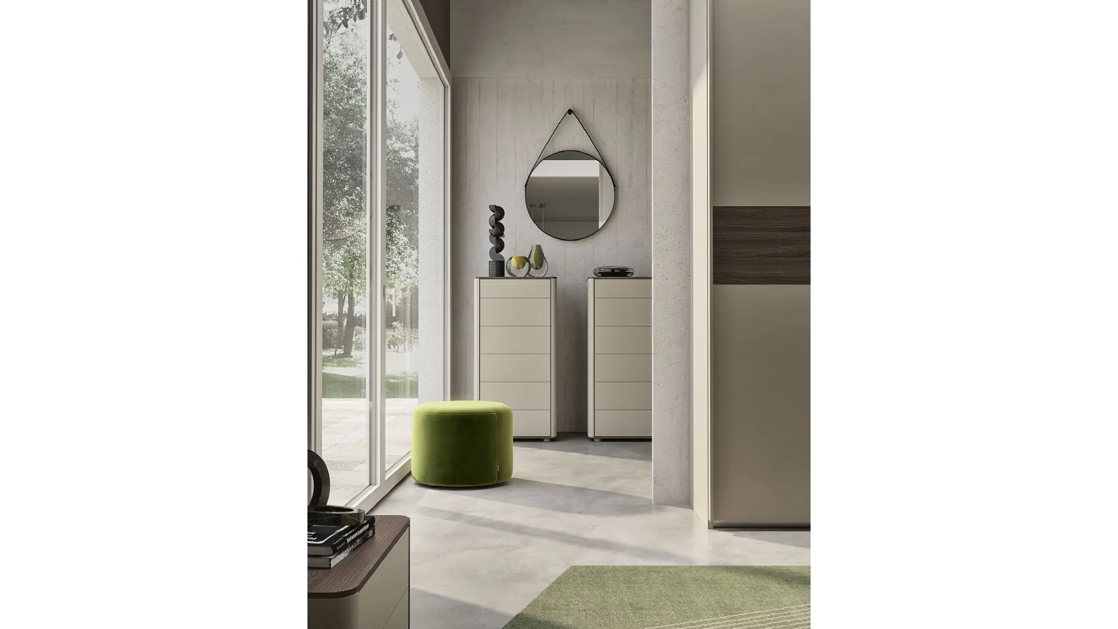 S75 Round Frame Bedside Table: contact us and get information about our furnishing solutions and decorate your room as you have always dreamed of. The bedroom also includes Bedside Tables: storage furniture for daily use that offer the opportunity to organize objects and rely on surfaces for various uses. With our modern bedroom sets from the S75 brand, specialist in home furnishings for the bedroom, you can create the room you have always desired. Optimize your spaces by choosing coordinated compositions of elements or recreate aesthetically pleasing style and color combinations relying on the catalog of furniture and accessories for the bedroom that we offer, like the melamine model visible in the photo, also customizable for you.