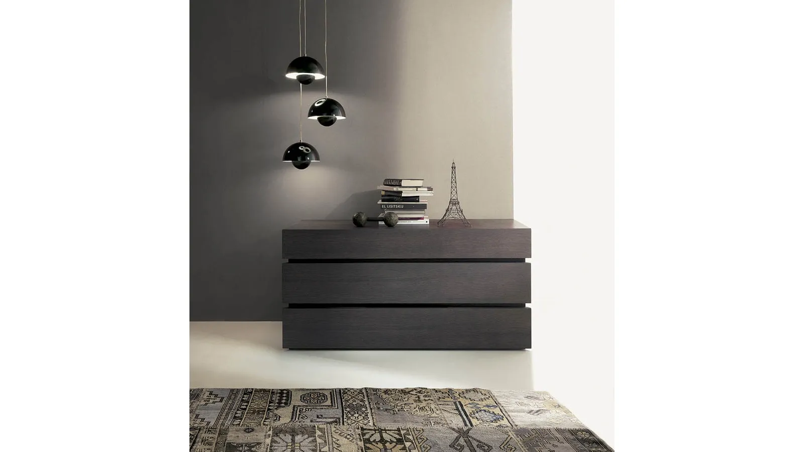 Il comò Quarantacinque di Fimar si integra perfettamente nella collezione di arredi per la zona notte, presentandosi come un elemento distintivo per il suo design contemporaneo e le sue soluzioni costruttive avanzate. La sua estetica è definita da meticolosi tagli a 45° sui frontali e da una precisa raccordatura tra il piano superiore e il frontale, dettagli che ne esaltano la pulizia formale e l'ingegneria del mobile. Interamente realizzato in legno, questo contenitore notturno offre non solo un'estetica raffinata ma anche una robustezza strutturale e una praticità d'uso ideali per l'ambiente domestico. Garantisce una durabilità eccezionale e prestazioni costanti nel tempo, assicurando un investimento solido per il tuo ambiente notte.