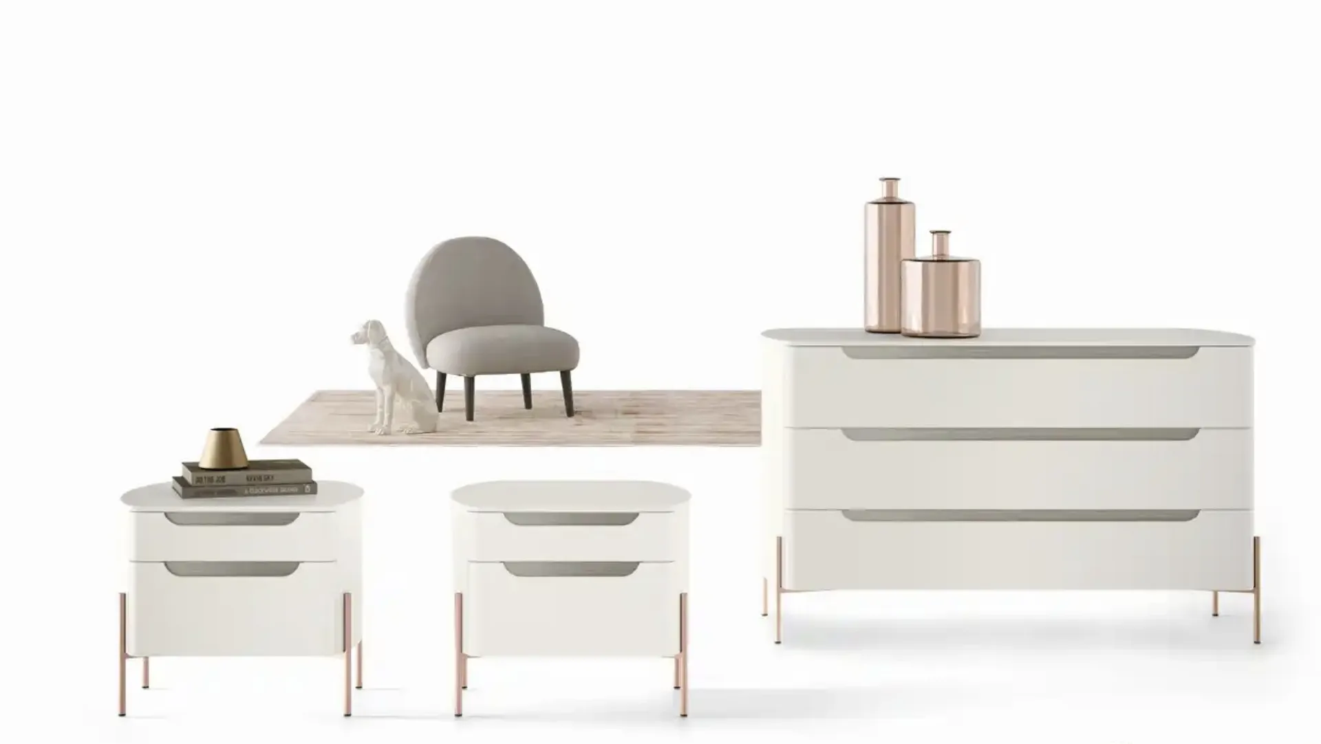 The Ambra Night Group by Moretti Compact Day Night is one of the most beautiful solutions capable of adding a stylish accent to the bedroom, with the use of excellent finishes. The bedside tables, dressers, and night groups can be coordinated with the bed and wardrobe or can be in balanced contrast with them: the purchase will be based on the objective availability of space and the search for a harmonious final effect. In the showroom, you will find a wide range of modern furniture and accessories from the renowned brand, specializing in the production of home furnishings for the bedroom.