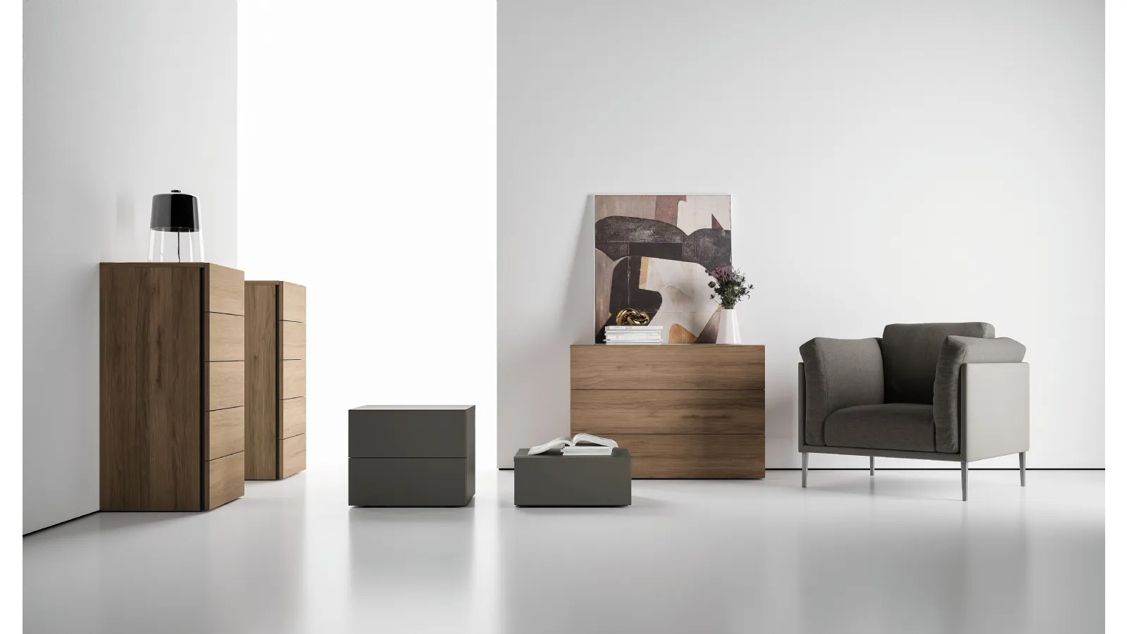 Il Gruppo Notte Brand di Spagnol Mobili, caratterizzato da un design geometrico puro e finiture personalizzabili in melaminico effetto legno o laccato, è disponibile con i nostri esclusivi servizi di progettazione, consegna e montaggio. Offriamo soluzioni complete per la zona notte, dai comodini ai comò e settimini, garantendo un'installazione professionale e un'assistenza completa nelle aree di Chiasso, Bellinzona e Milano. La nostra priorità è assicurare la tua completa soddisfazione post-vendita, offrendo soluzioni d'arredo affidabili e durature supportate da un servizio clienti attento e professionale.