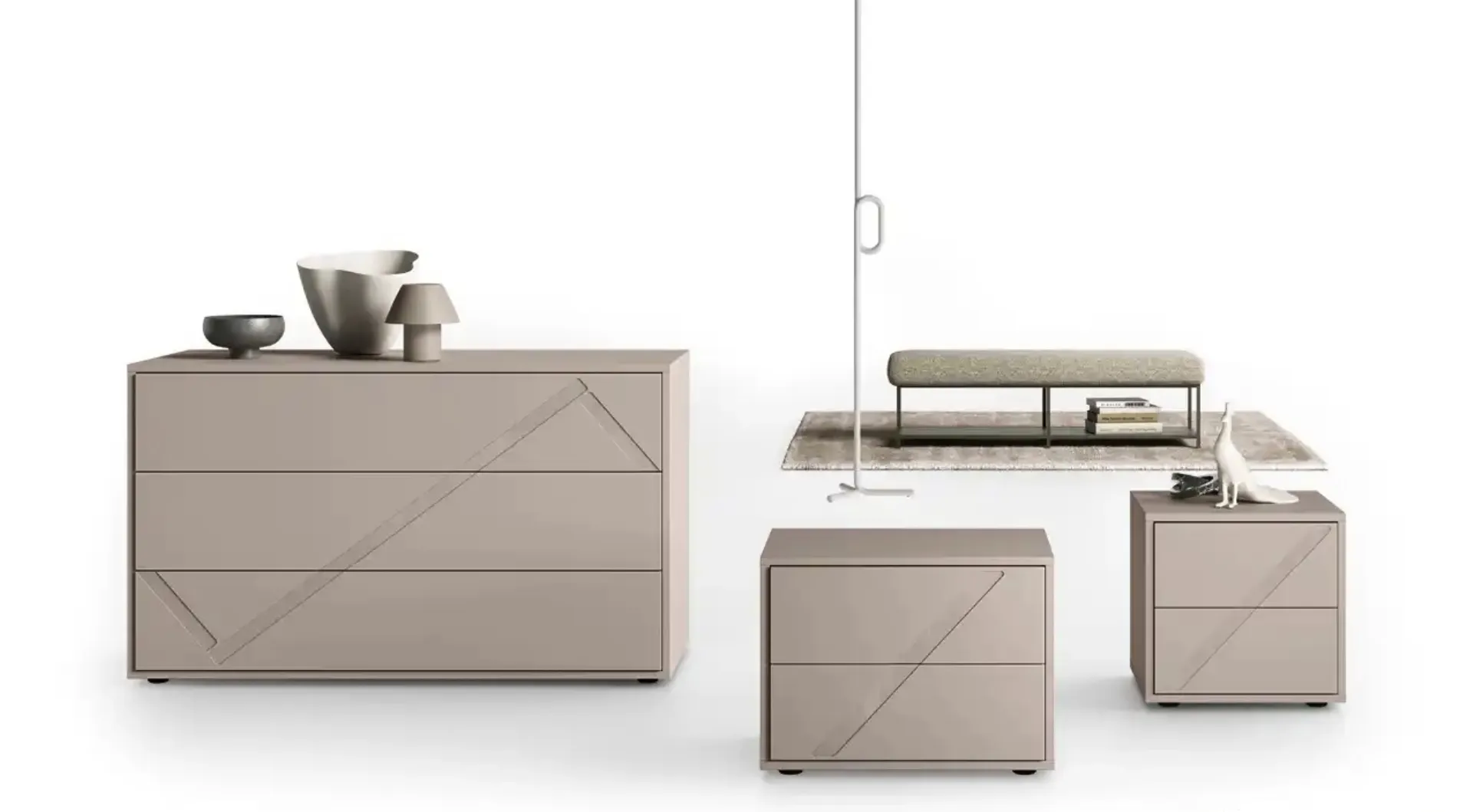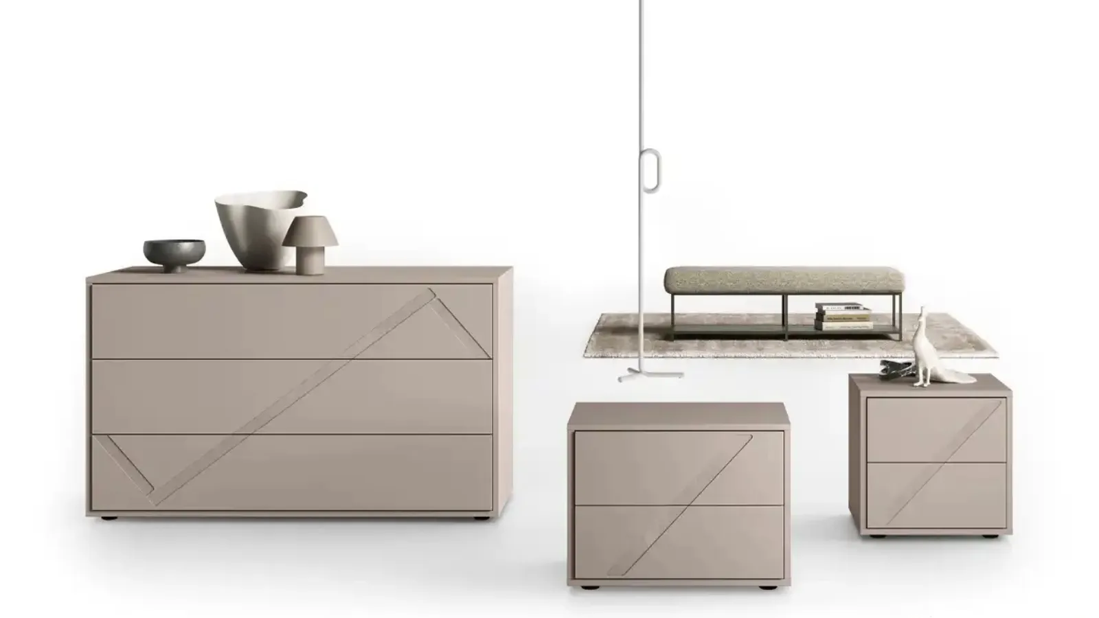 Bedside tables and night groups in matt lacquer for design environments: discover the Volturno Nigh