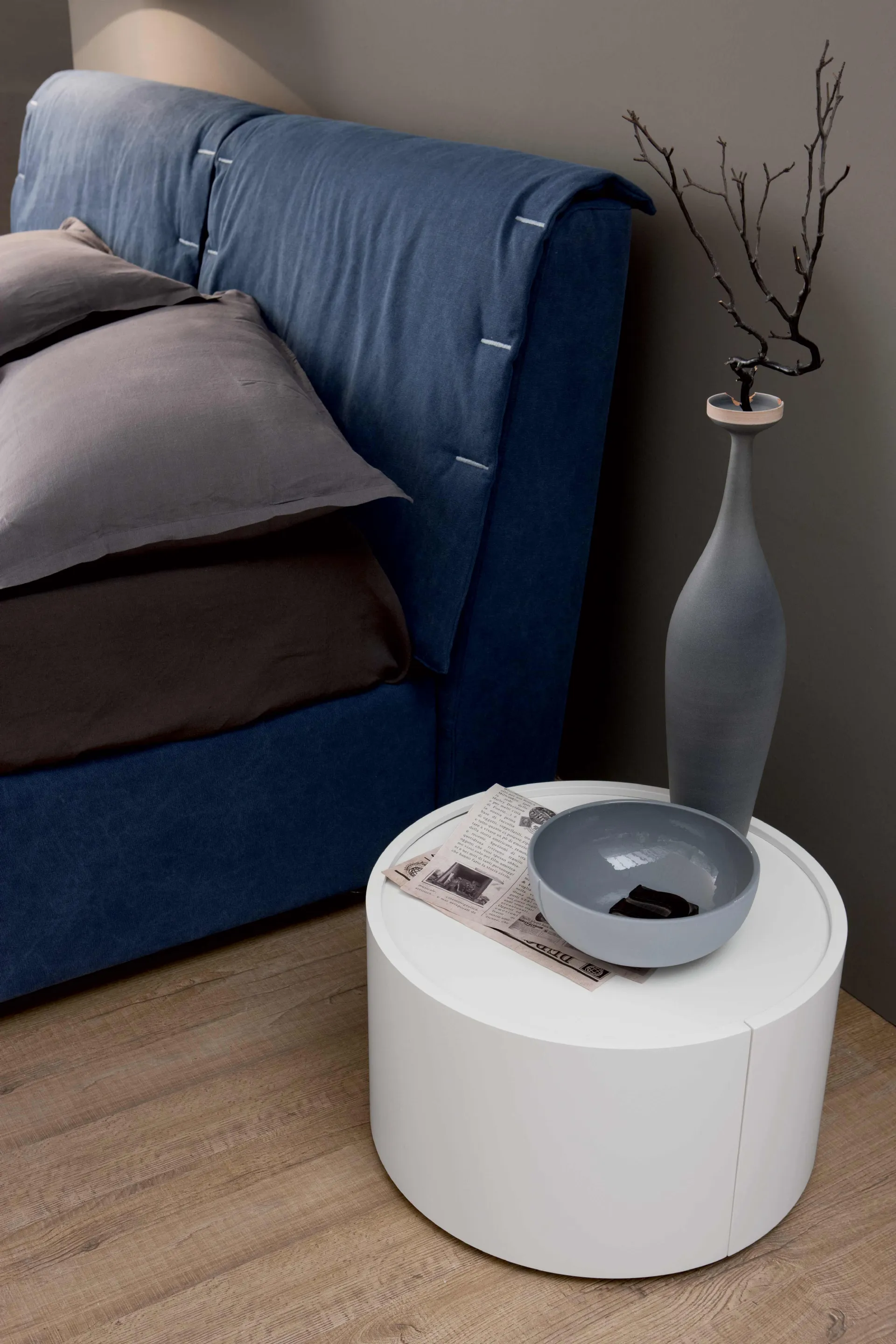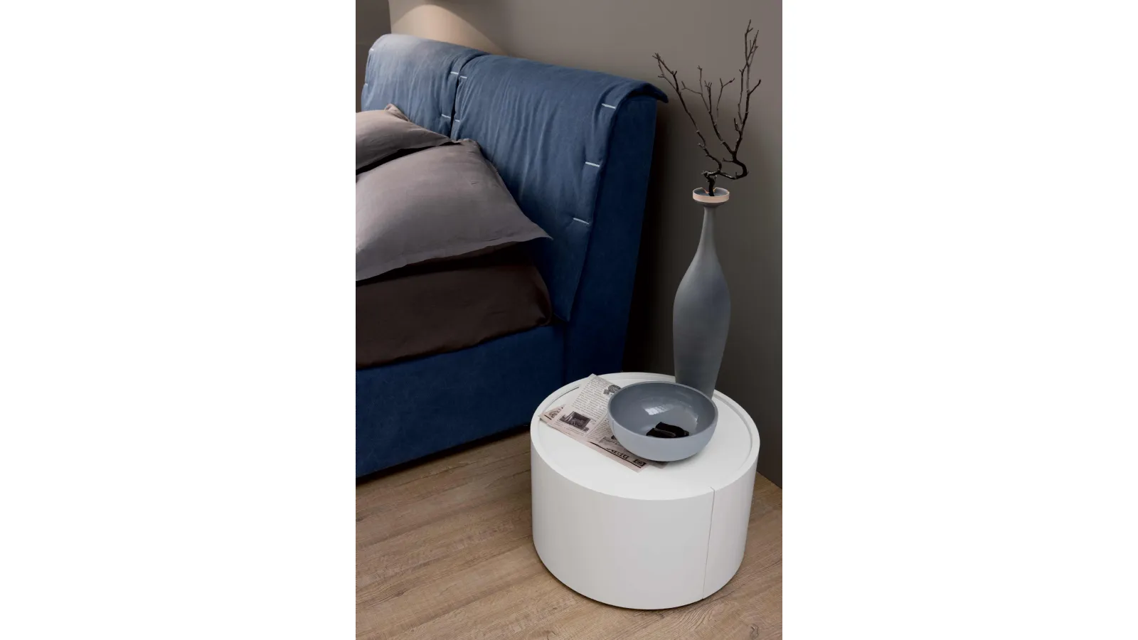 Enhance your premises by choosing compositions of matching elements or create aesthetically pleasing combinations of style and colors thanks to the catalog of furniture and accessories for the rest area that we offer, such as the matt lacquered model shown in the photo, which can also be made to measure for you. With our design sleeping groups from the Spagnol Mobili brand, leader in home furnishings for the rest area, you can create the sleeping area you've always dreamed of. Olympia oval bedside table by Spagnol Mobili : contact us and find out more about our compositions and furnish the room as you've always imagined it. The rest area also contains the bedside tables: very useful storage furniture that leaves the possibility of organizing small things and relying on support surfaces for different uses.