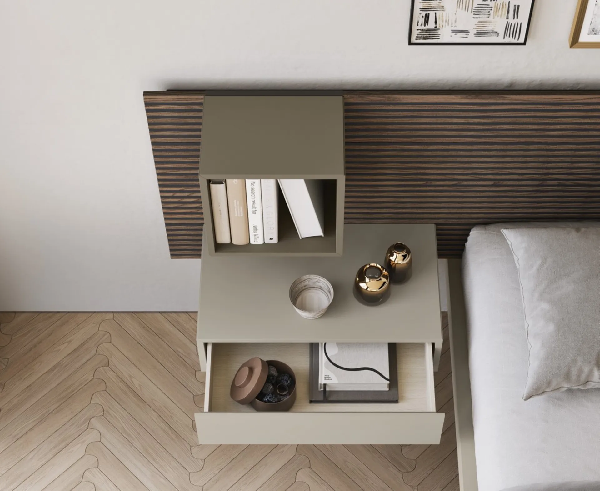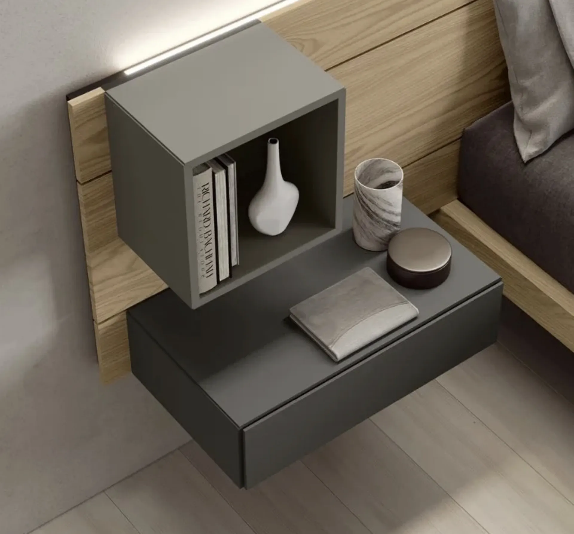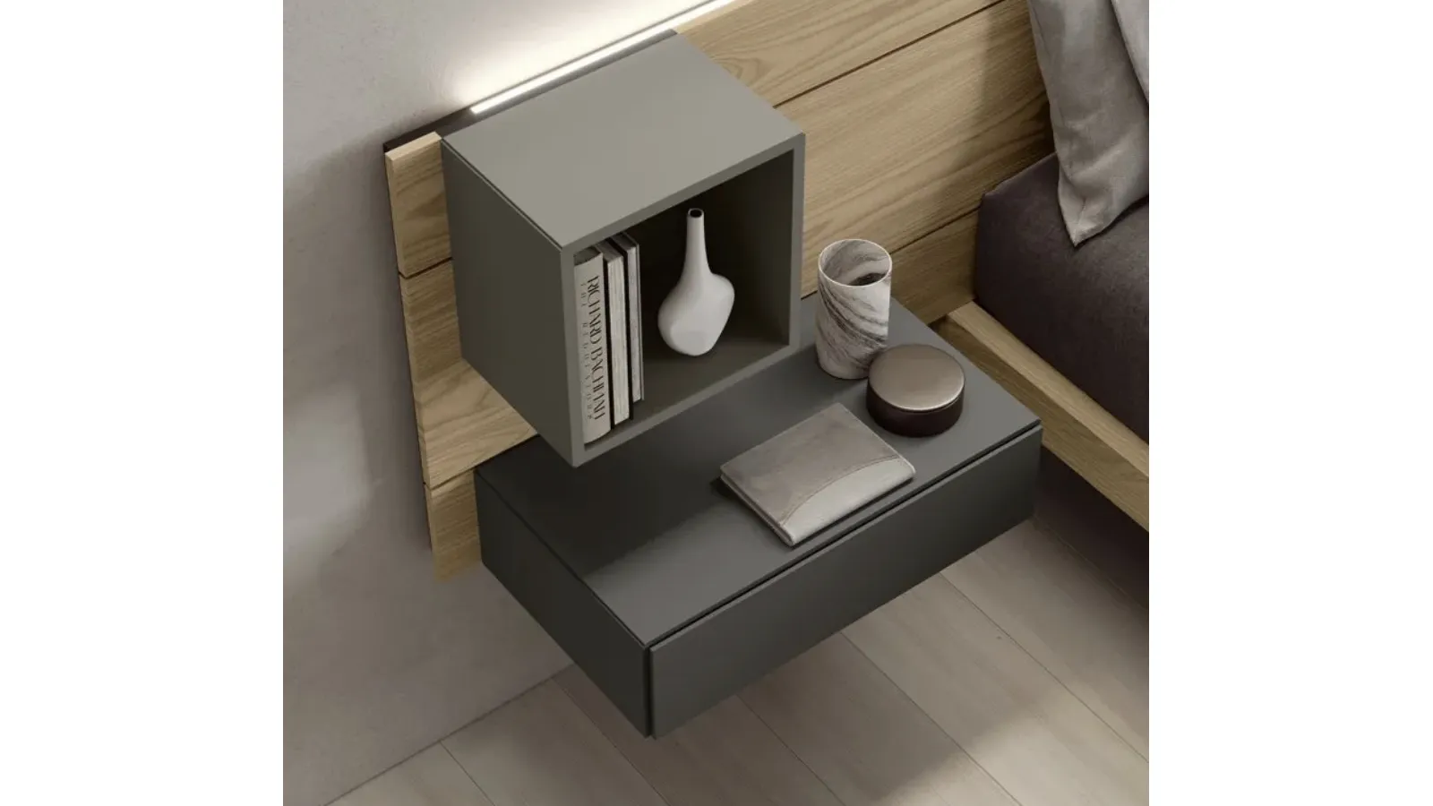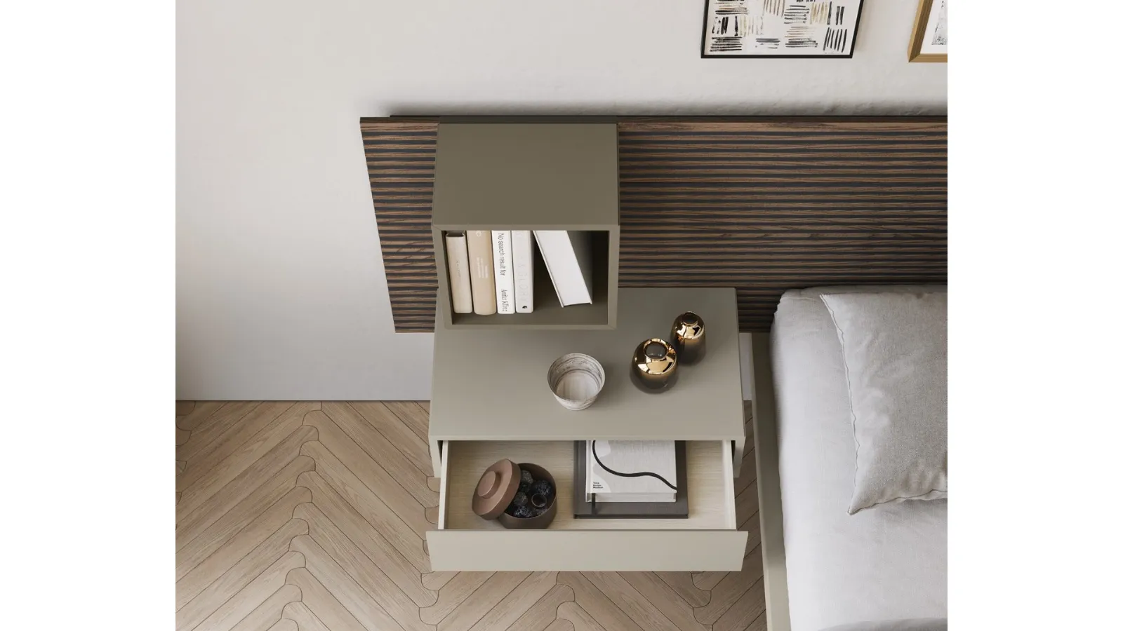A rich catalogue of night groups Modern bedside tables in matt lacquer: choose the value of Fimar's