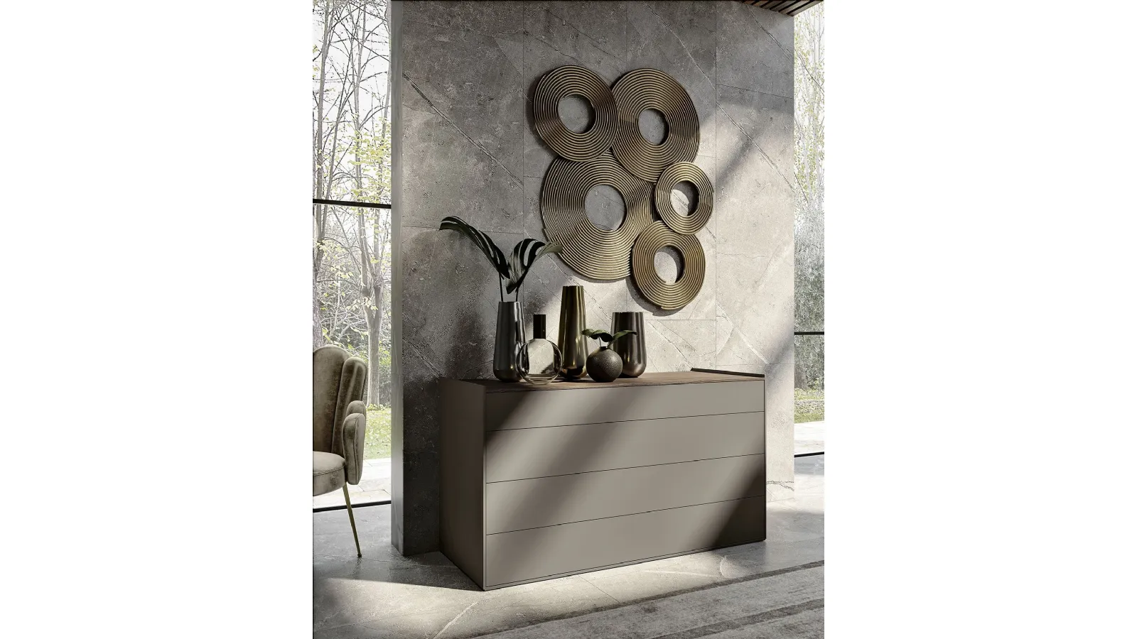 Quali sono i vantaggi distintivi del comò Spalla 10 Basic Grey?Il comò Spalla 10 Basic Grey offre un design contemporaneo e una funzionalità ottimale per l'organizzazione dello spazio. I suoi cassetti sono progettati per essere pratici e capienti, rendendolo una soluzione ideale per mantenere l'ordine con stile in ogni camera da letto.