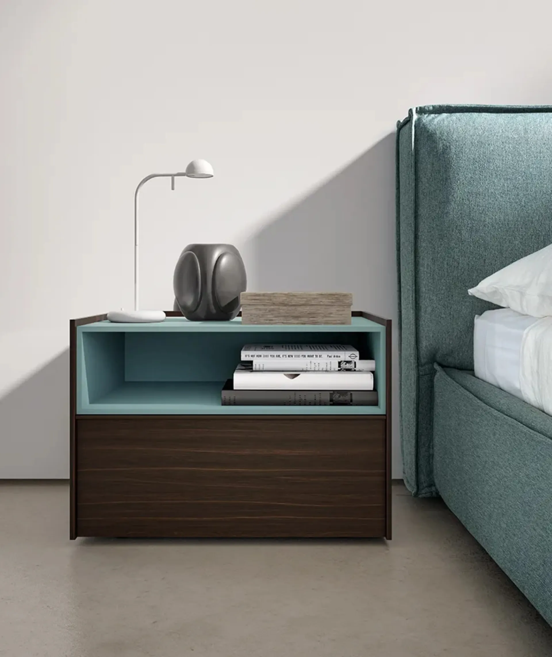 A wide variety of bedside tables and modern bedroom sets in melamine from Adok: discover the Stream 02 Bedside Table model.