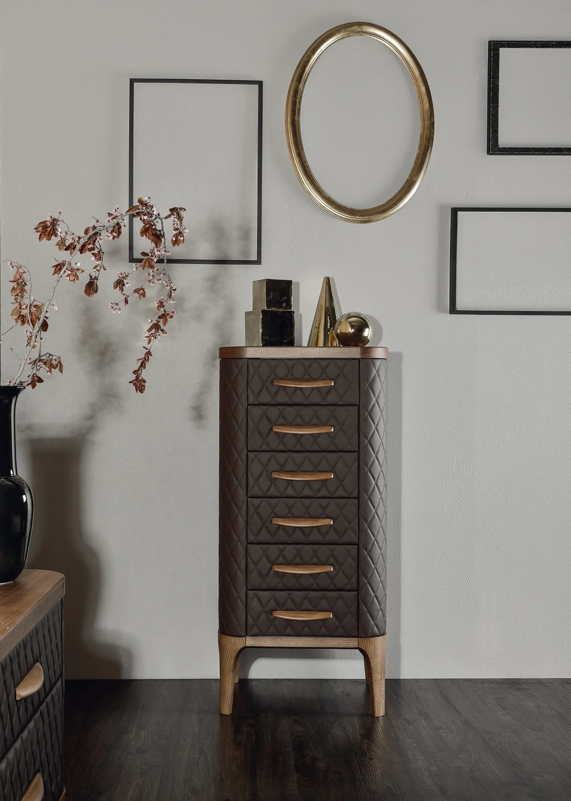 La cassettiera Tiffany può essere coordinata con altri mobili o è un pezzo indipendente?La cassettiera Tiffany di Tonin Casa è progettata per offrire versatilità. Può essere un pezzo d'arredo indipendente che valorizza ogni ambiente, oppure integrarsi armoniosamente con altri elementi della stessa collezione o con arredi esistenti, grazie al suo design raffinato e alla possibilità di personalizzazione.