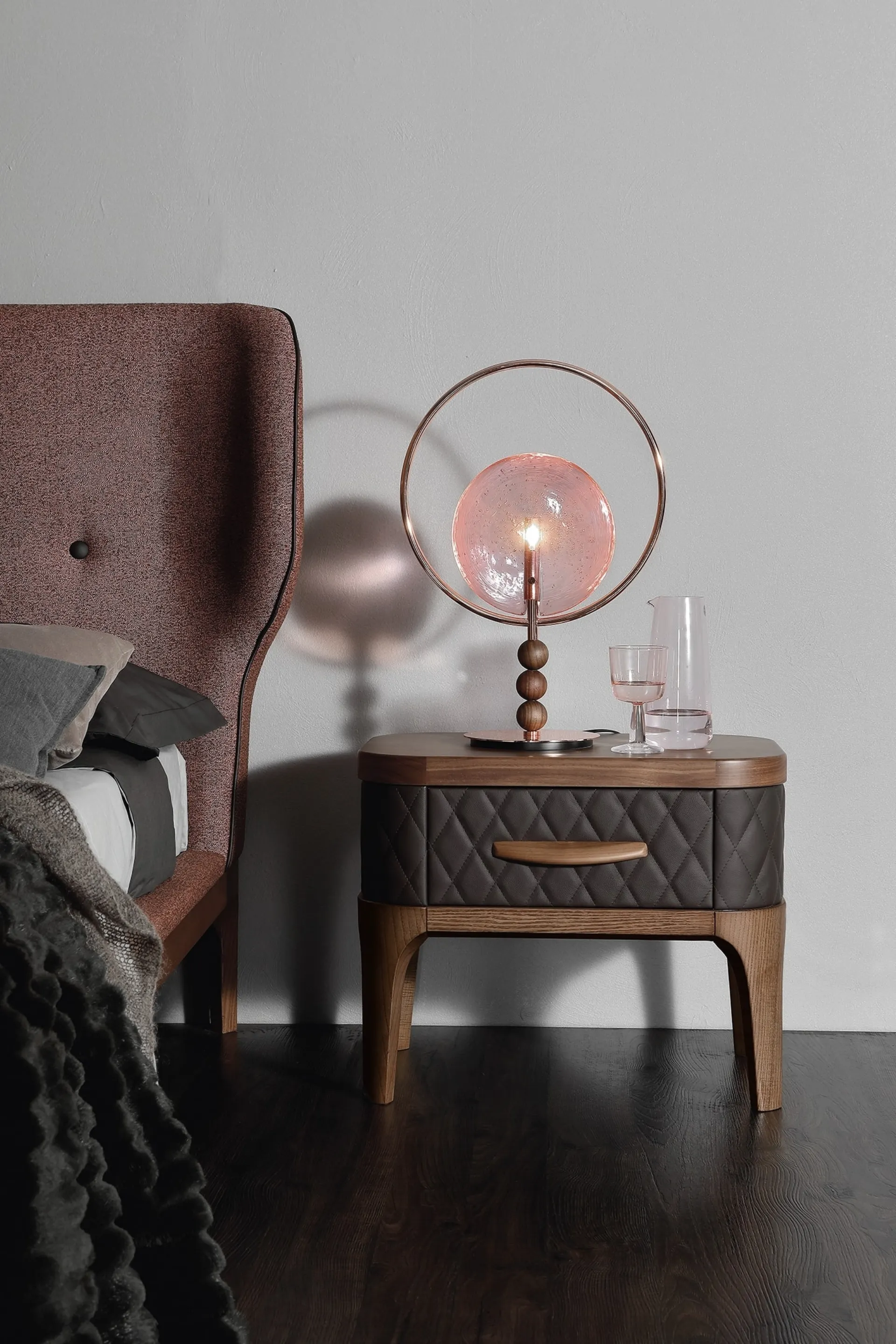 Tiffany bedside table with front covered in leather by Tonin Casa.