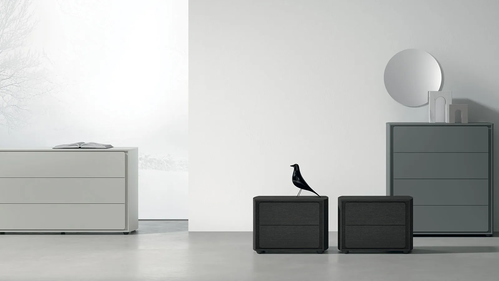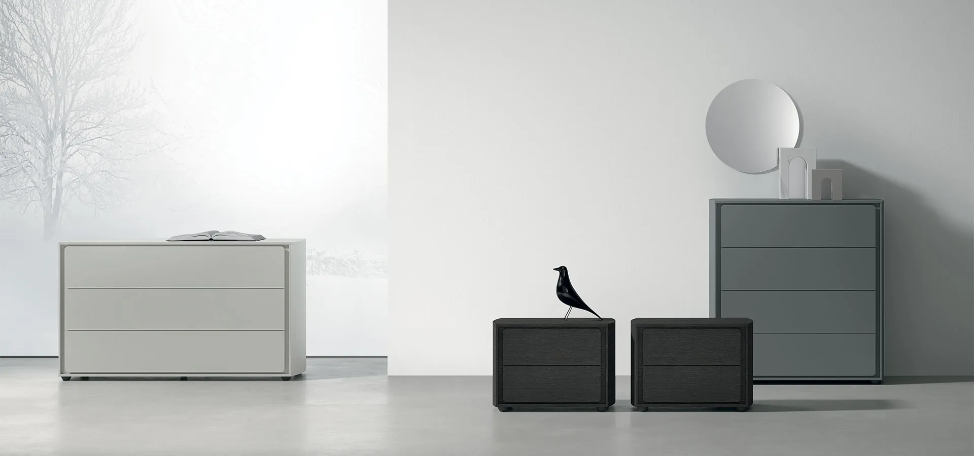 A large variety of modern bedside tables and night groups in matt lacquer by Tomasella: discover the Tivoli Night Group model