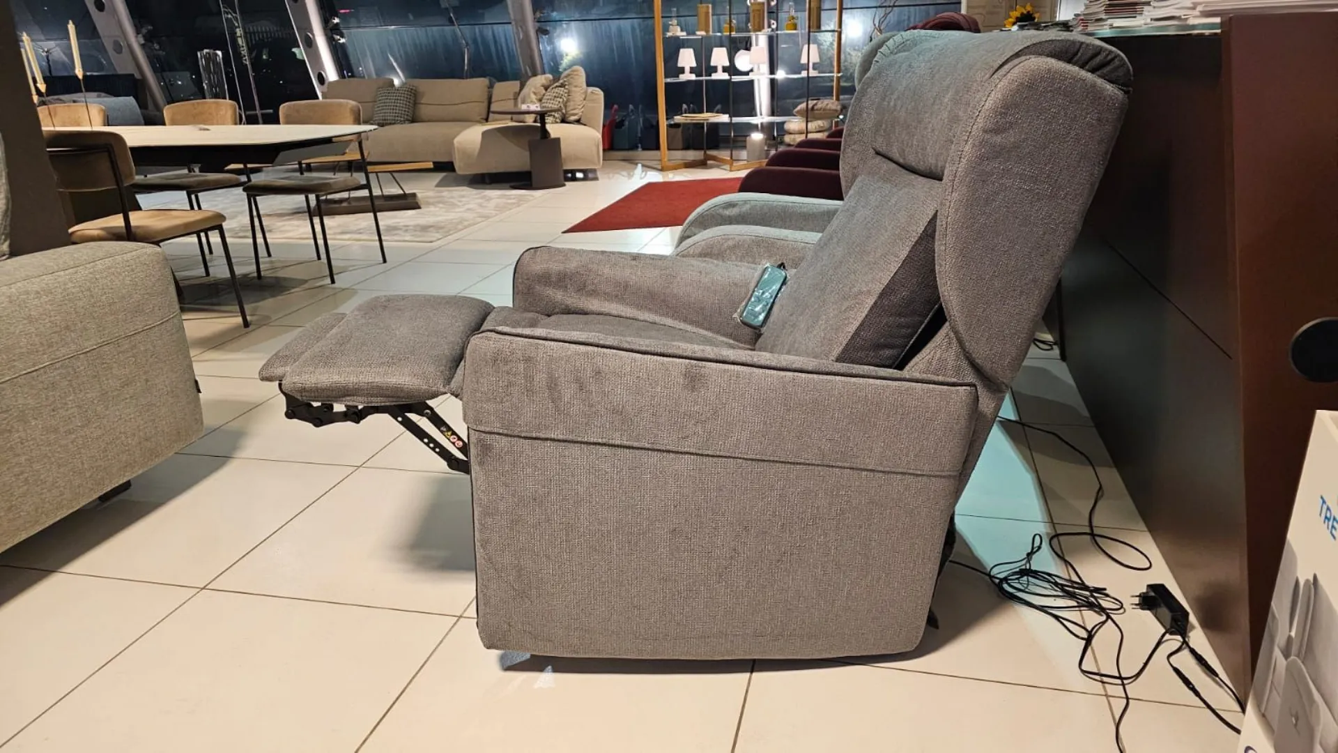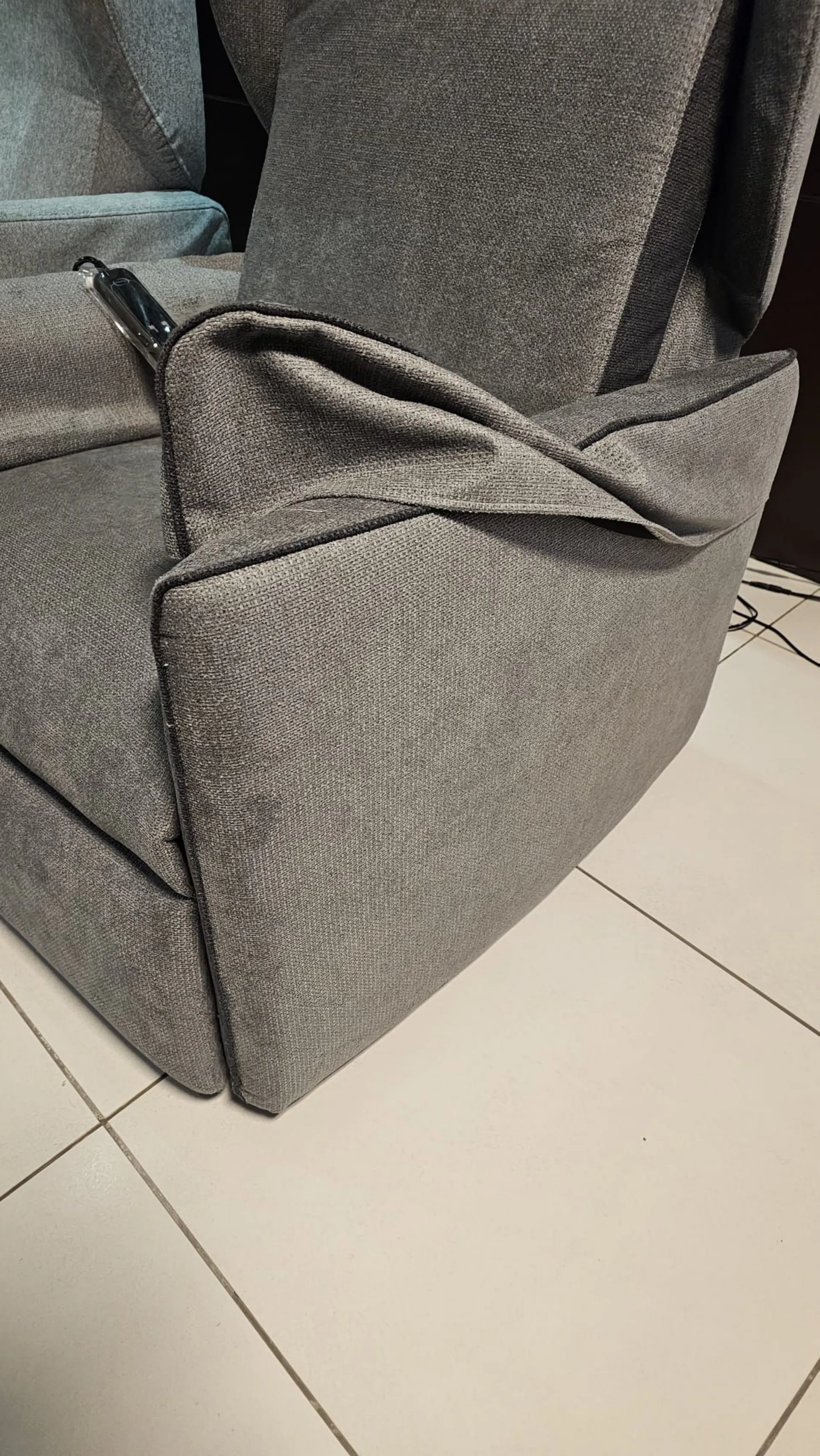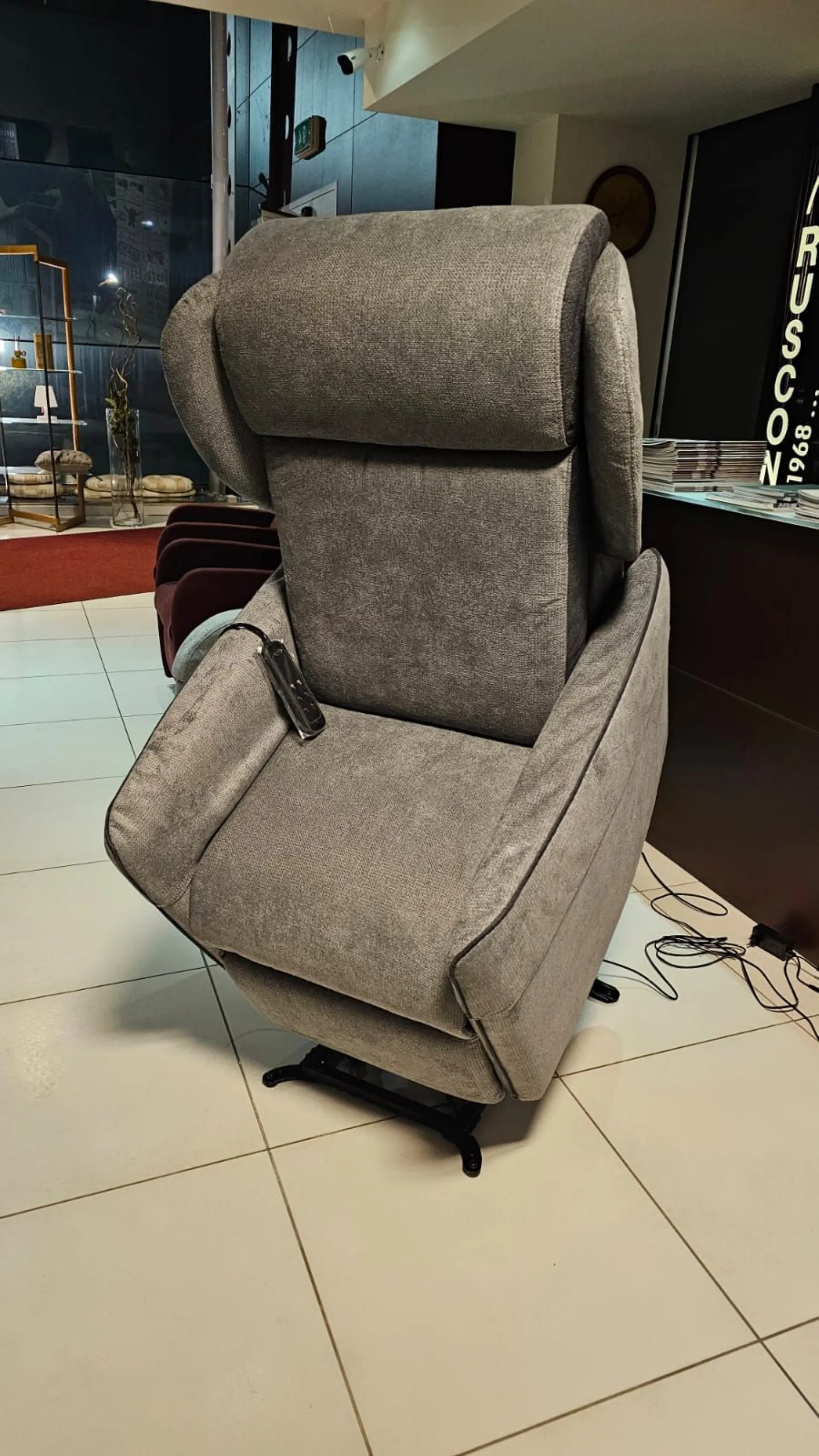 ANDROMEDA relax armchair, with removable fabric upholstery except for the backrest, equipped with motorized Click&Roll roller, battery preparation, double footrest, armrest cover kit covers, possibility of managing contrasting stitching, medical device class 1.