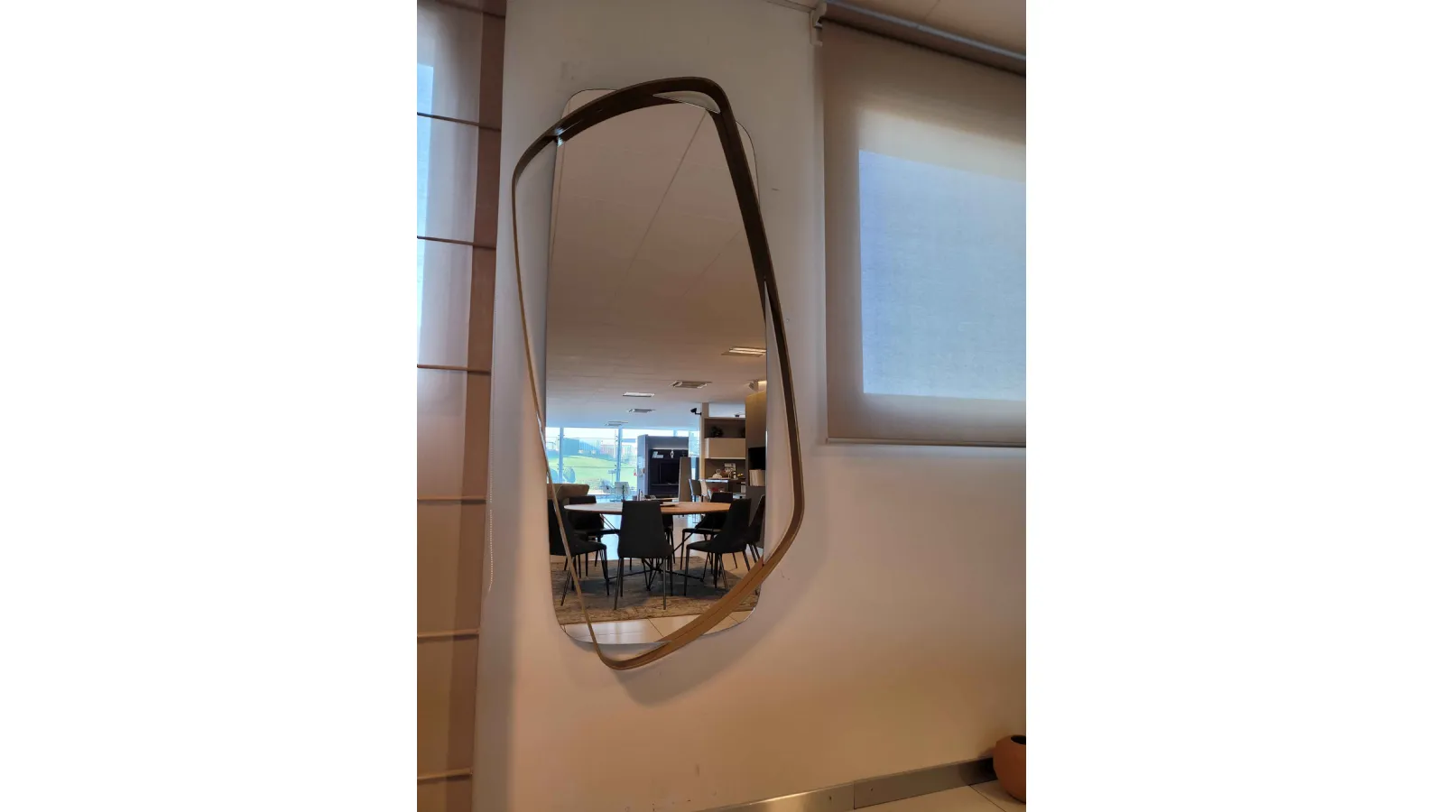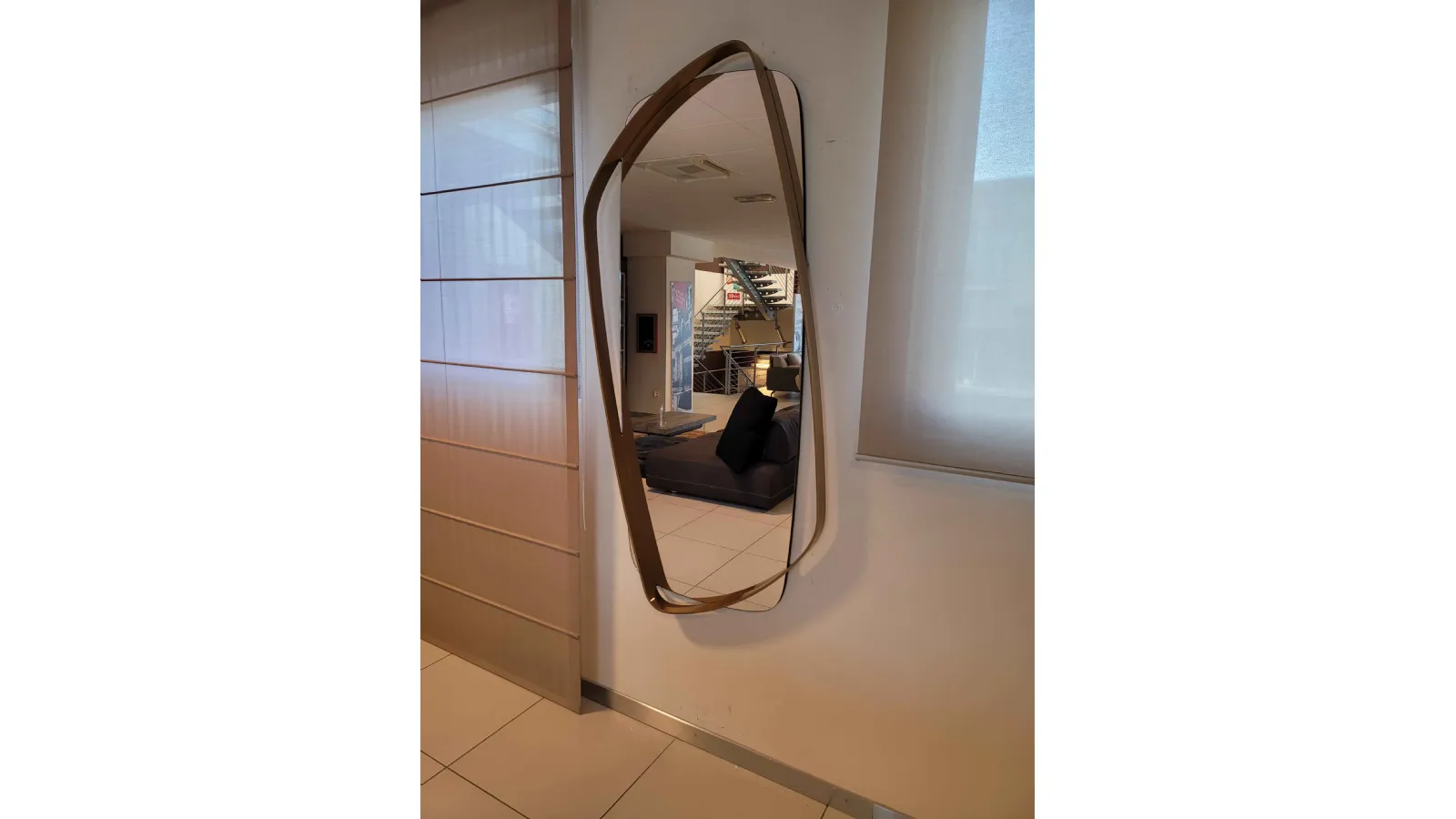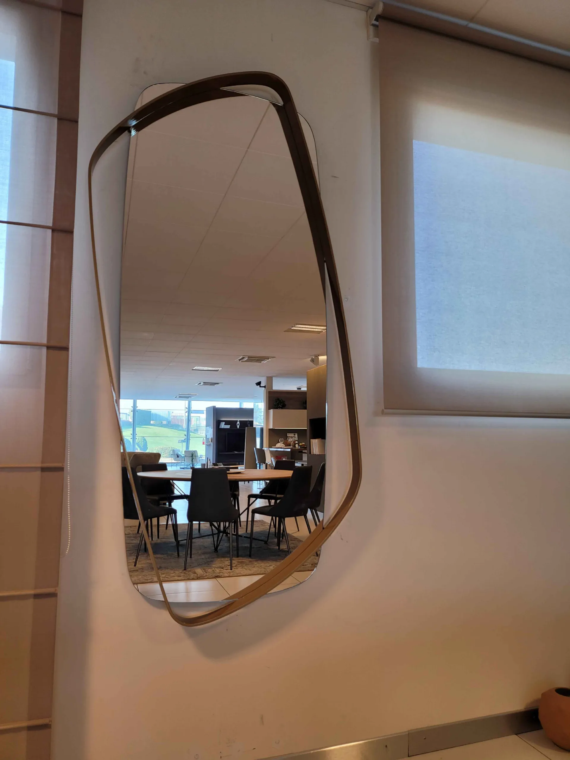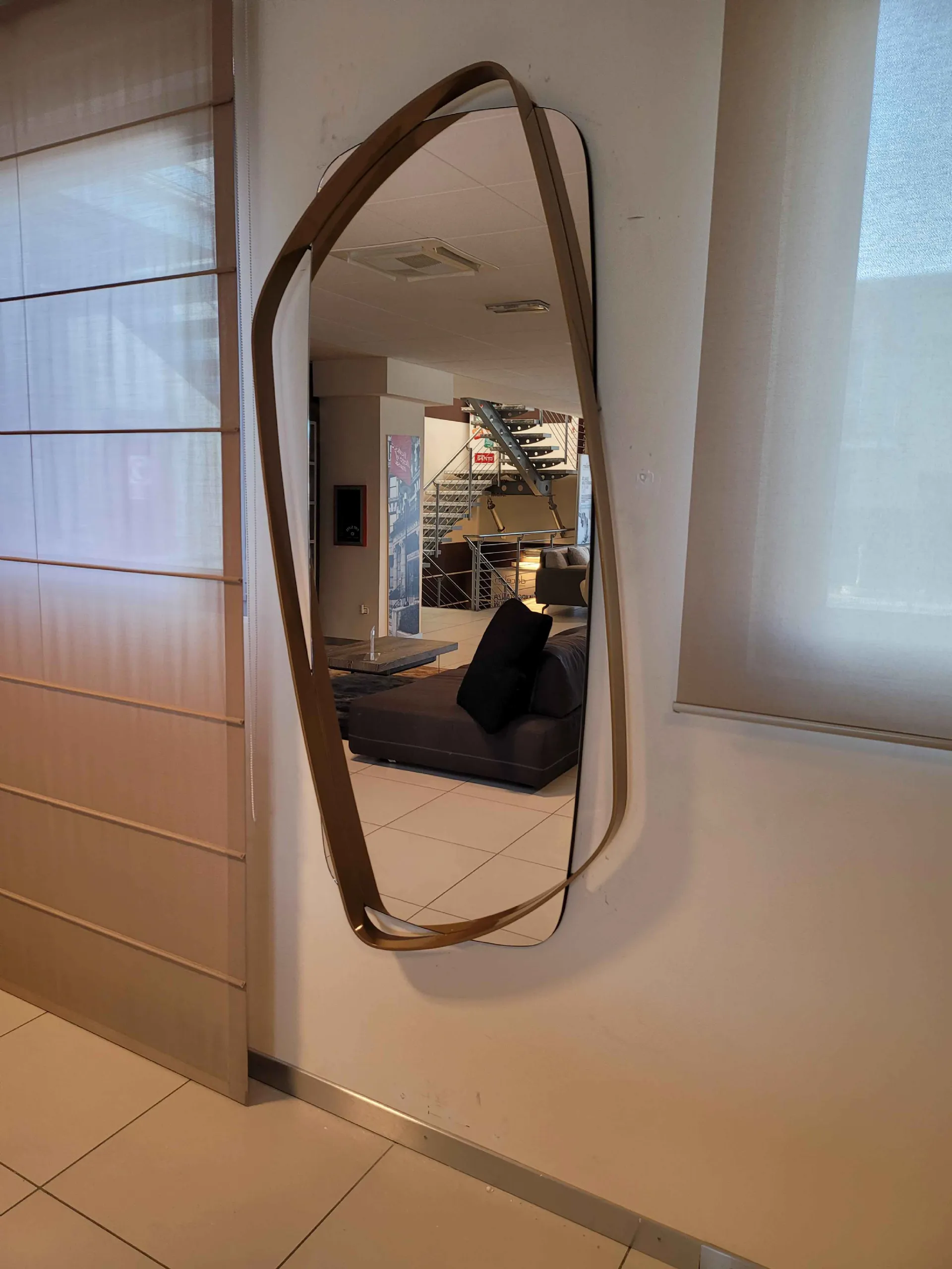 The offset frame with respect to the mirror gives it a personality; unique and vibrant all 39; object.