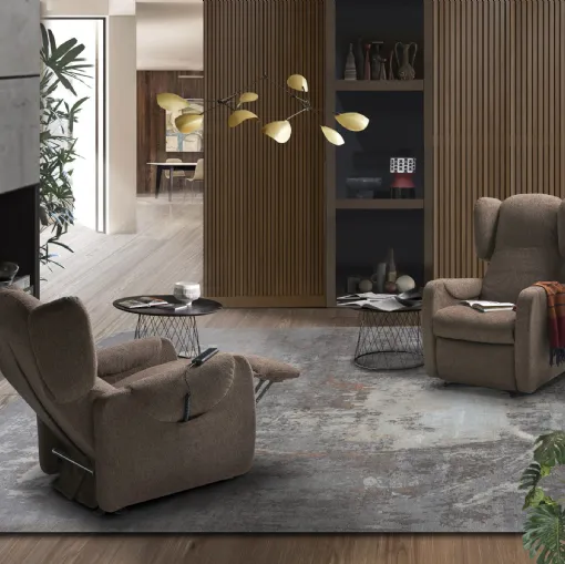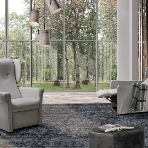 In the living room or bedroom, we can position the armchair in various ways, as well as opt for combinations with poufs, sofas, or other accessories. Relax armchairs are able to accompany every movement with ease, guaranteeing the highest level of comfort for all needs. Before designing the spaces with a relax armchair or lifting chair, it is necessary to evaluate the dimensions of the room and its functions, which will determine the choice of the right model. Relax armchairs welcome us in moments of relaxation and everyday leisure: these upholstered pieces must always be comfortable and able to offer the right support to those sitting thanks to targeted and safe movements. Get information about our collection of relax armchairs from the best brands in the industry.