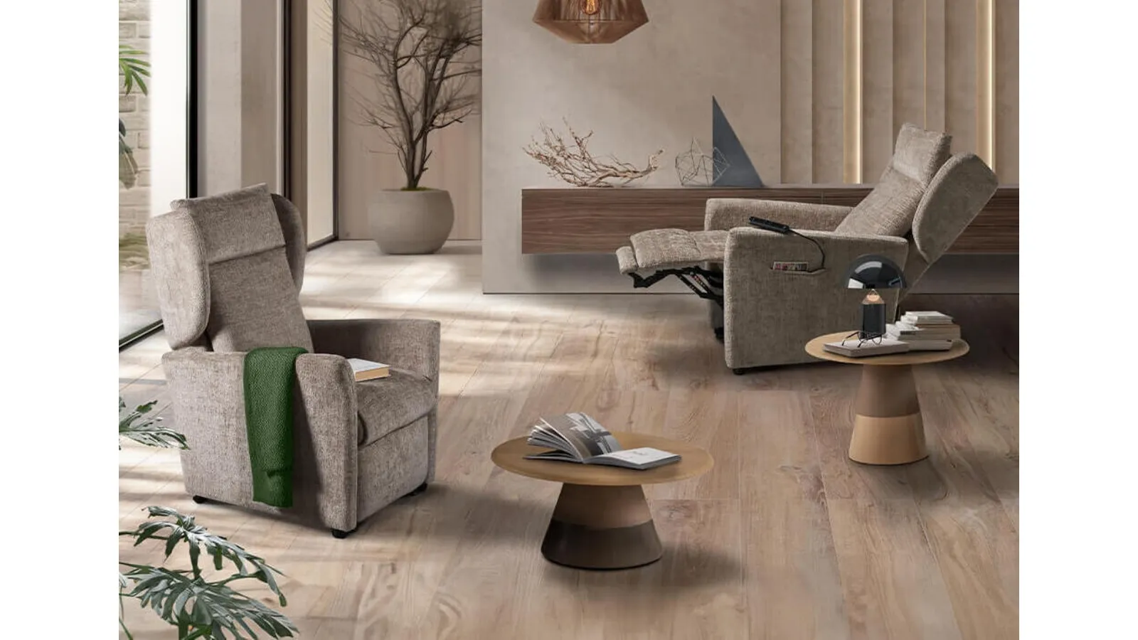 Discover our series of modern relax armchairs: choose the Virginia fabric model