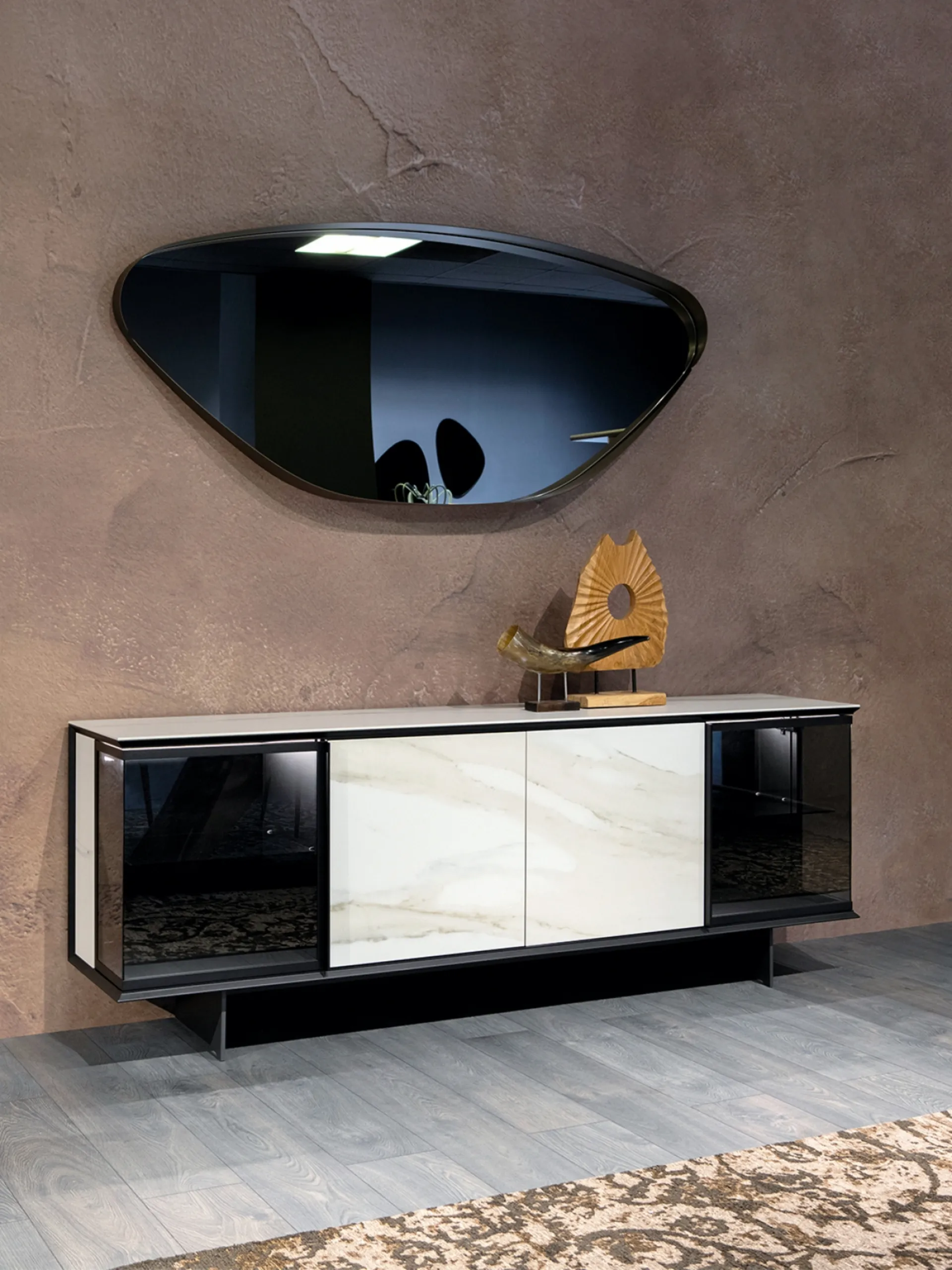 Offriamo un servizio completo di progettazione e consegna per la madia Aira Sideboard di Tonin Casa, coprendo con cura aree come Como, Tradate e Gallarate e le zone limitrofe. Questo splendido mobile, dal design raffinato, presenta ante in gres porcellanato e, opzionalmente, illuminazione interna a LED, che ne esaltano l'eleganza. Le sue aperture laterali nascoste sono un esempio della cura per il dettaglio che garantisce un'estetica impeccabile. La base in metallo nero opaco si abbina a ante laterali in vetro e ante centrali in gres, disponibili in un'ampia selezione di finiture. La nostra esperienza è al vostro servizio per guidarvi nella scelta e assicurarvi un'installazione perfetta. La vostra soddisfazione a lungo termine è la nostra priorità: offriamo garanzia e supporto per la madia Aira Sideboard, assicurando un acquisto sereno e duraturo.