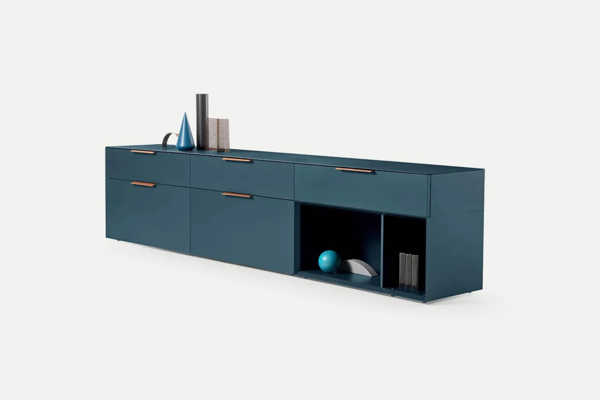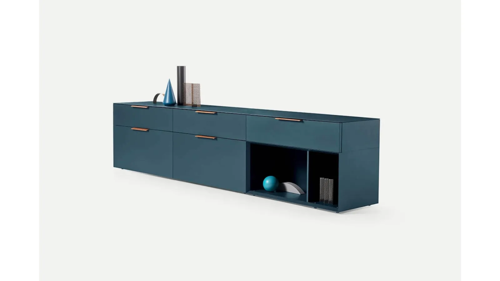 | Materiale: | Disponibile con maniglie in cuoio (pelle) con supporto in metallo zincato o con sistema push-pull. La struttura esterna può essere in Matt Nobilitato, Laccato Opaco o Laccato Lucido Spazzolato. I moduli a giorno e i frontali sono disponibili in Laccato Opaco o in Essenza (es. Frassino Lino, Miele, Antracite, Nero). Il basamento con i piedi è offerto in finiture metalliche. I ripiani interni sono in vetro trasparente spesso 0.6 cm. |