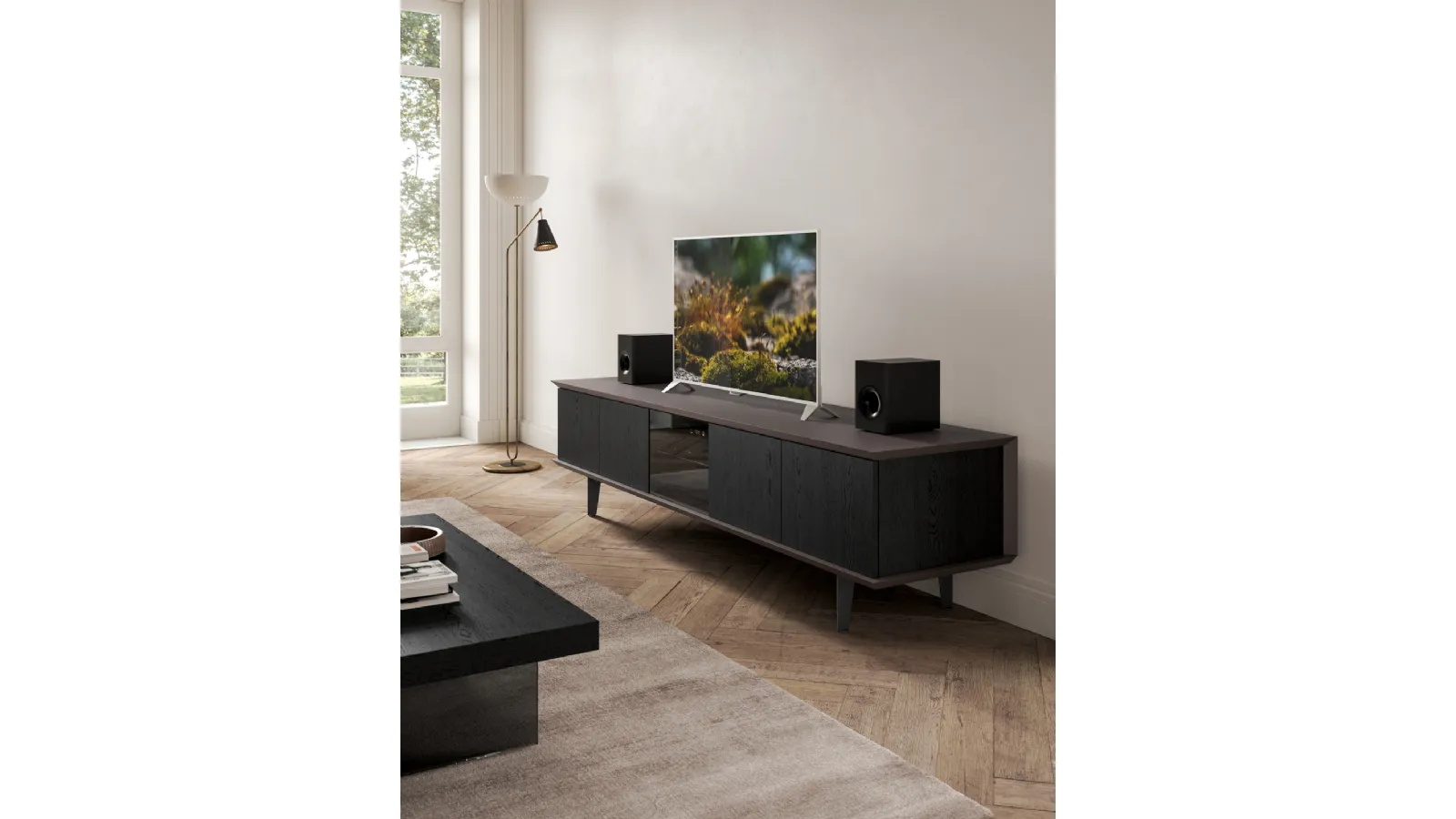Sideboard with simple shapes Brera TV in wood ideal for customizing and organizing modern rooms in the best possible way