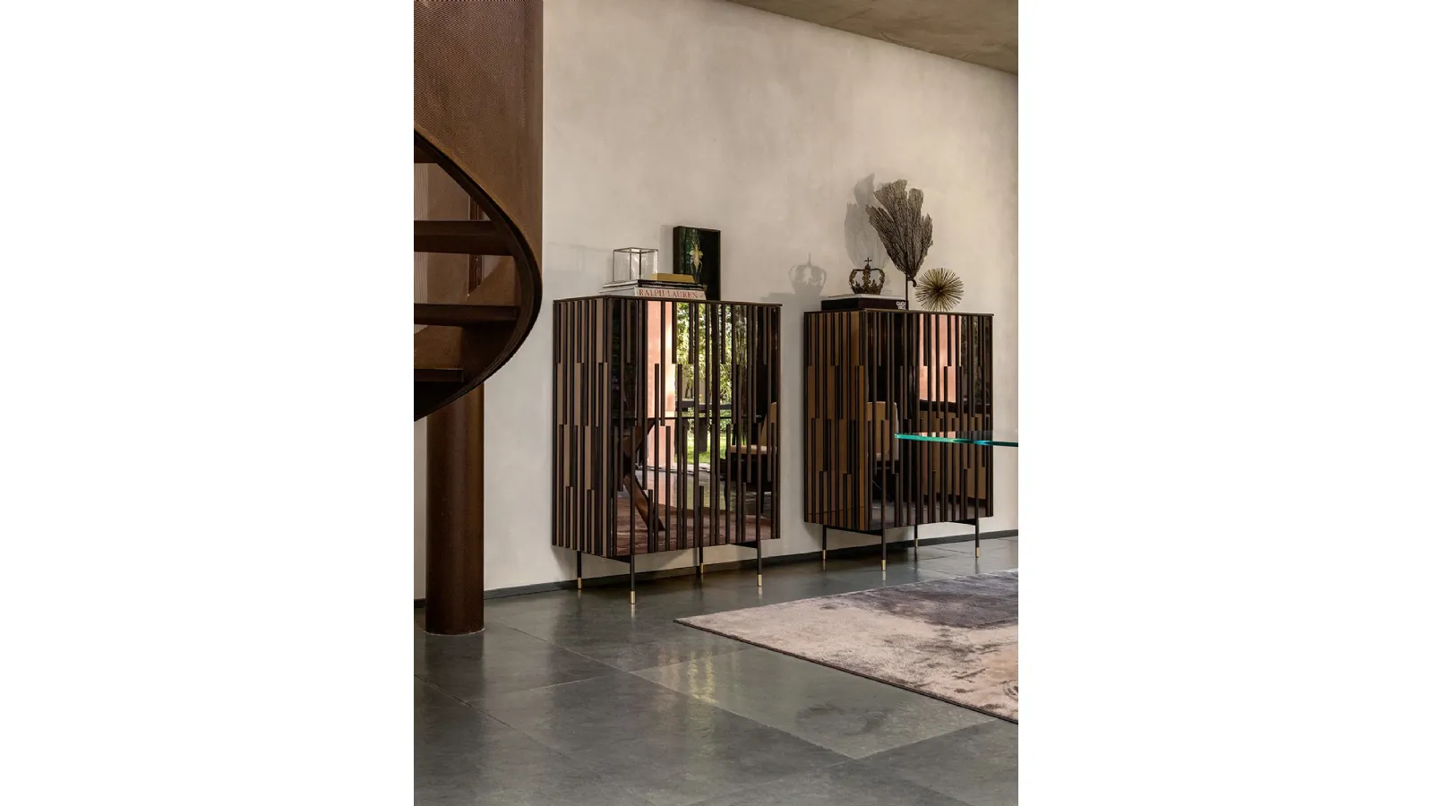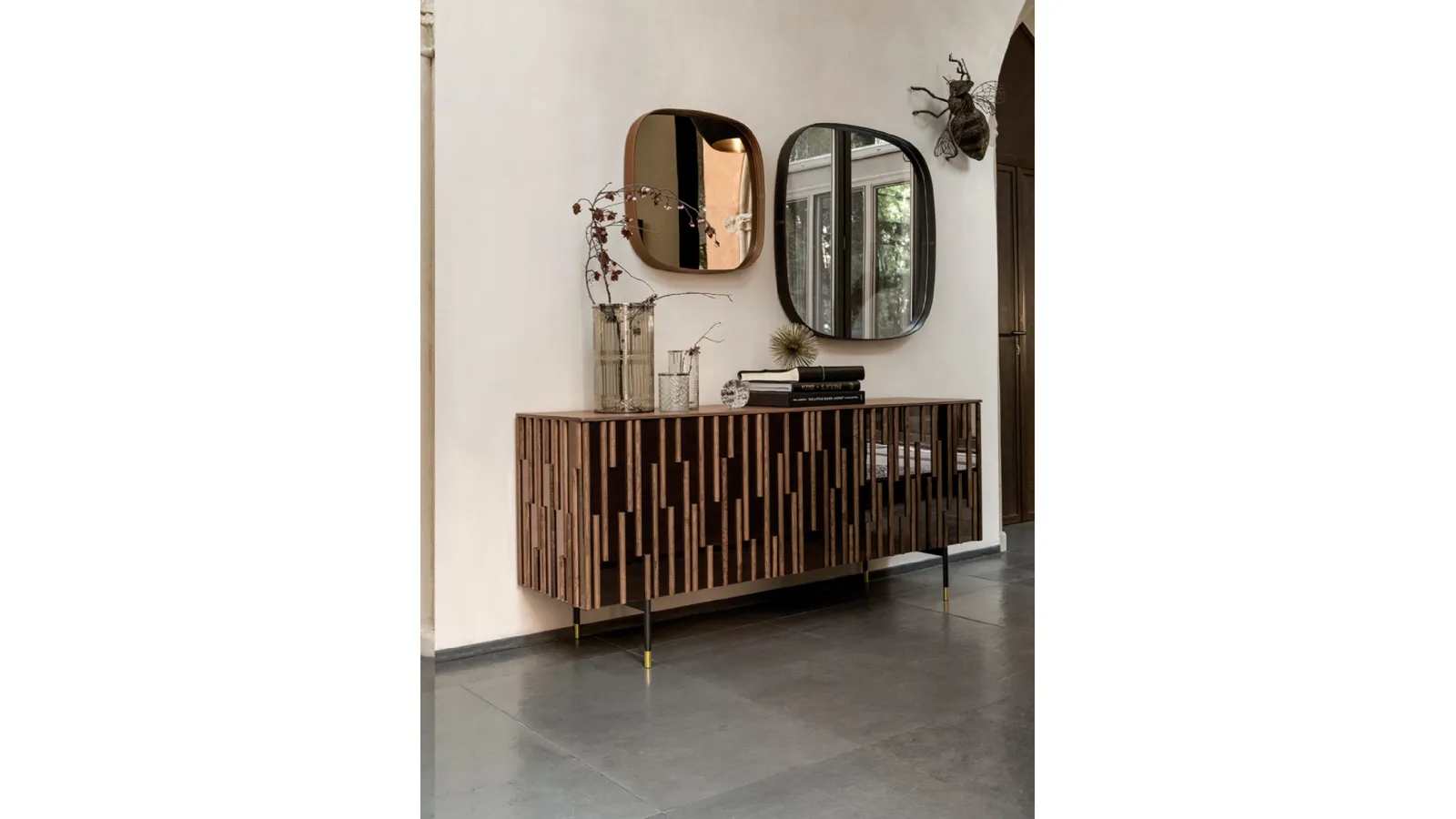 Remember that very often you will host family and friends in the living room: the space must be accessible and functional, with sideboards of great aesthetic value. In order not to fall into error, it is good to carefully evaluate which pieces of furniture are suitable for your living room, among various proposals of equipped walls, bookcases and sideboards. If you want to buy one of the most exclusive modern wooden sideboards, visit us and we will show you top quality products live. The Drops sideboard with wooden base and mirror front by Tonin Casa in wood gives us the possibility to enrich both a dining room and a living room, thanks to the quality of the materials and attention to detail. In the living area it is essential to feel comfortable on a daily basis, since it is, by far, the space dedicated to moments of relaxation, leisure and hospitality.