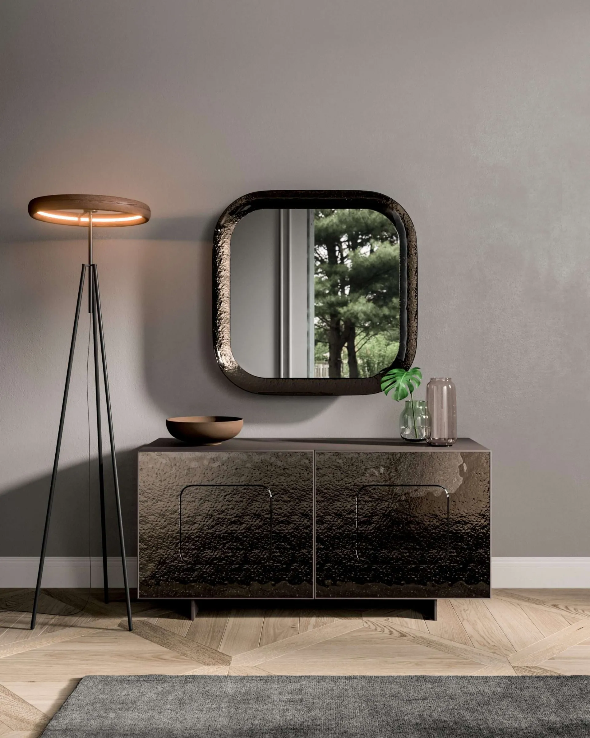 Captivating personality and a unique design will win you over too: the Giulia sideboard by Ozzio is one of the most beautiful solutions on the market. Discover our line of glass sideboards from the well-known and renowned Ozzio brand, like the model in the photo, and you can create an operational and practical living room. A sideboard like this strategically enhances your spaces, enriching their aesthetics: contact us and find out how to give life to an atmosphere with a refined aesthetic with furniture and accessories for the living room. The sideboards, like the glass model shown in the photo, are able to embellish indoor spaces thanks to the quality of the coverings and finishes. The manufacturer brand has highly prized home furnishings in its catalog: we are waiting for you in the store to show you the most beautiful furnishing compositions live.