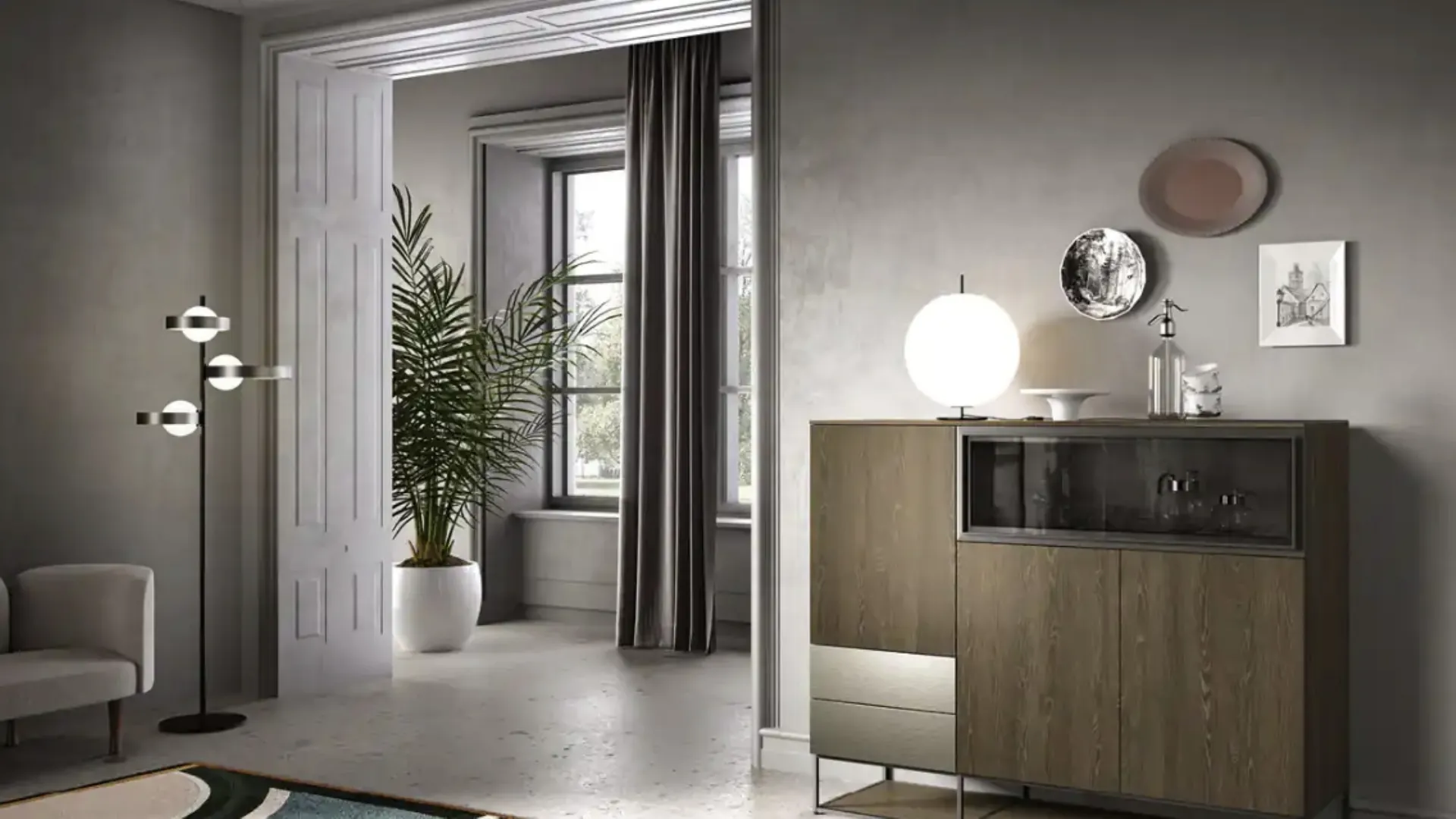 Even in a not generous living space, these living room furniture can solve various housing needs, guaranteeing various possibilities of customization. Modern sideboards, including the model visible in the photo, make the living room or dining area beautiful thanks to unique design and great storage capacity. The Madia Kosmos KM314 by Moretti Compact Giorno Notte, visible in the photo in melamine, solves the most particular space and style needs, furnishing the living room with functionality and a unique style. If you desire a space-saving living room furniture model, discover a wide range of Home Furnishings from the best manufacturers in our store and contact us for more information and quotes. If you are a furniture enthusiast and always stay updated on the new trends in the field, our exhibition center is the perfect place for you.