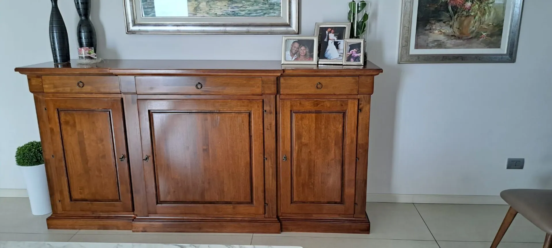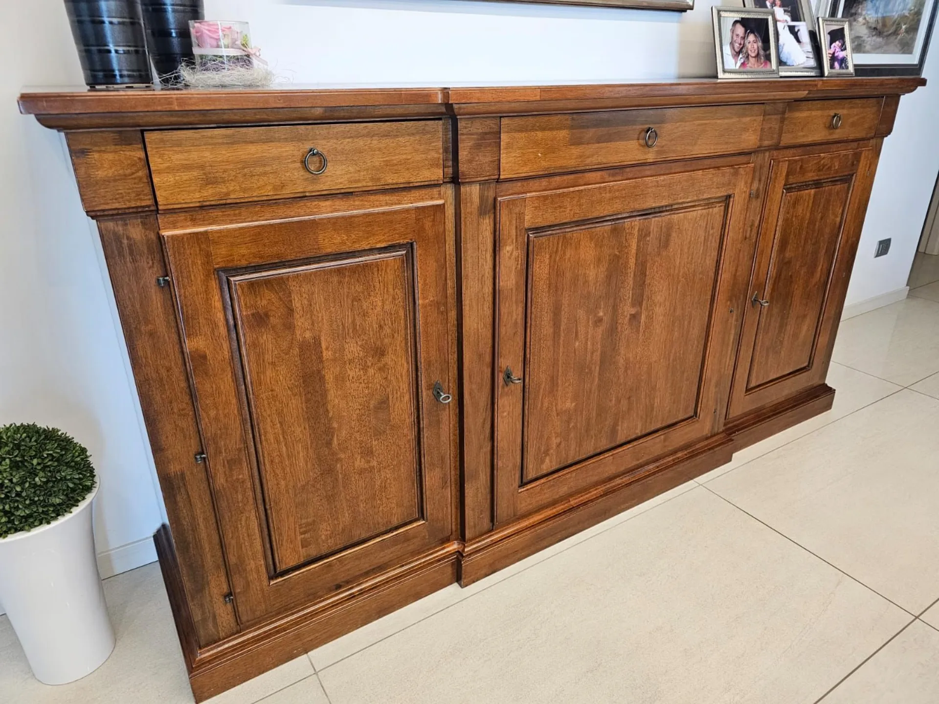 Ancient solid walnut tulipwood sideboard measures cm L.227xP.53xH.113