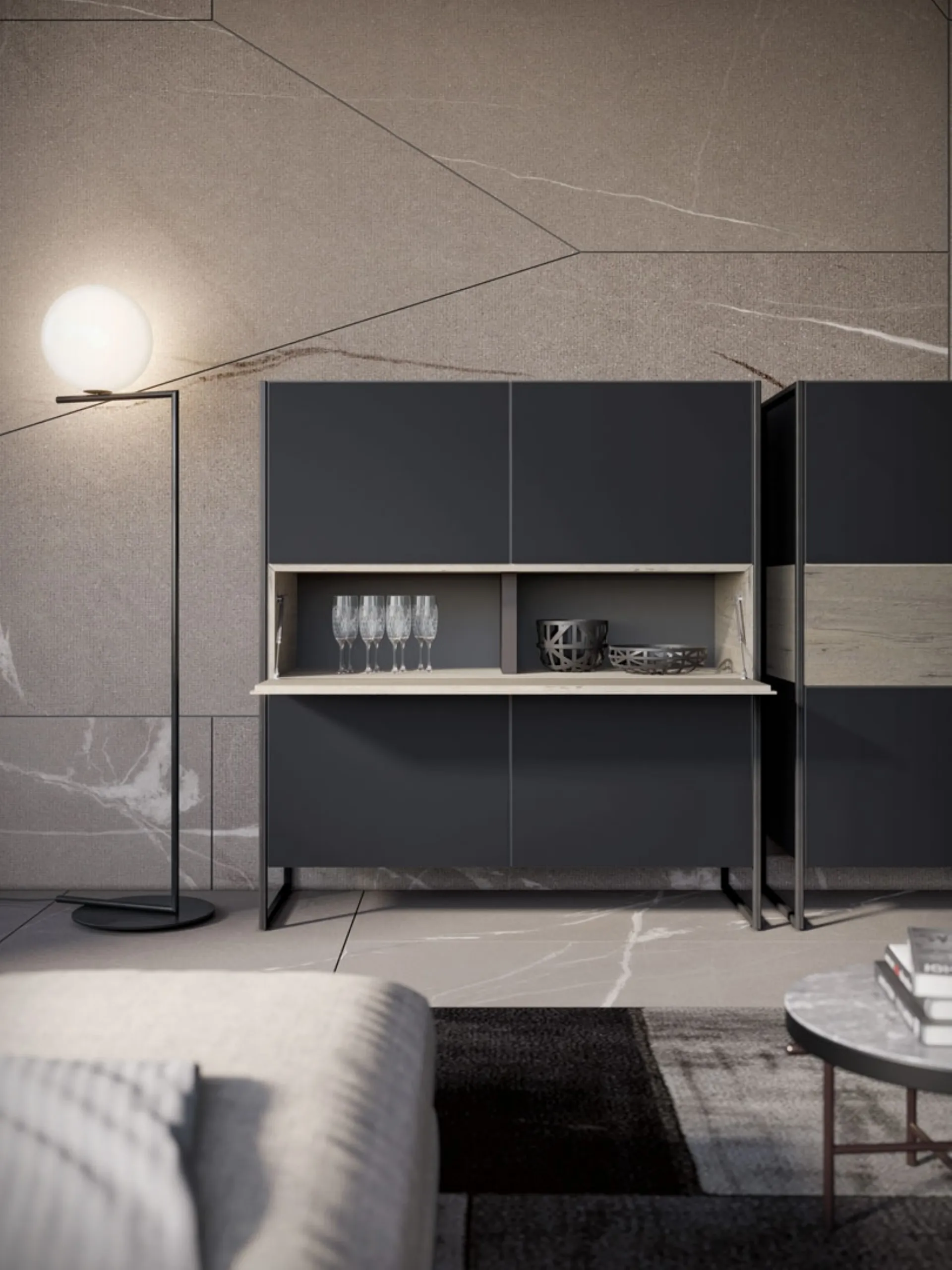 La madia Rebel RS_01 di Fimar, con il suo distintivo design industriale e la sua eccellente funzionalità, è disponibile con un servizio completo di progettazione, consegna e montaggio attivo nelle aree di Tradate, Varese, Chiasso e nelle zone limitrofe. Questo mobile, che combina vani a giorno e contenitori con ante, è pensato per offrire un equilibrio perfetto tra stile contemporaneo e praticità. Garantiamo un'esperienza d'acquisto senza pensieri, dalla consulenza iniziale all'installazione finale, assicurando che la tua nuova madia si integri perfettamente nel tuo ambiente living. La tua soddisfazione a lungo termine è la nostra priorità: investiamo nella durabilità e nello stile, offrendo garanzie e assistenza post-vendita complete per tutti i nostri mobili.
