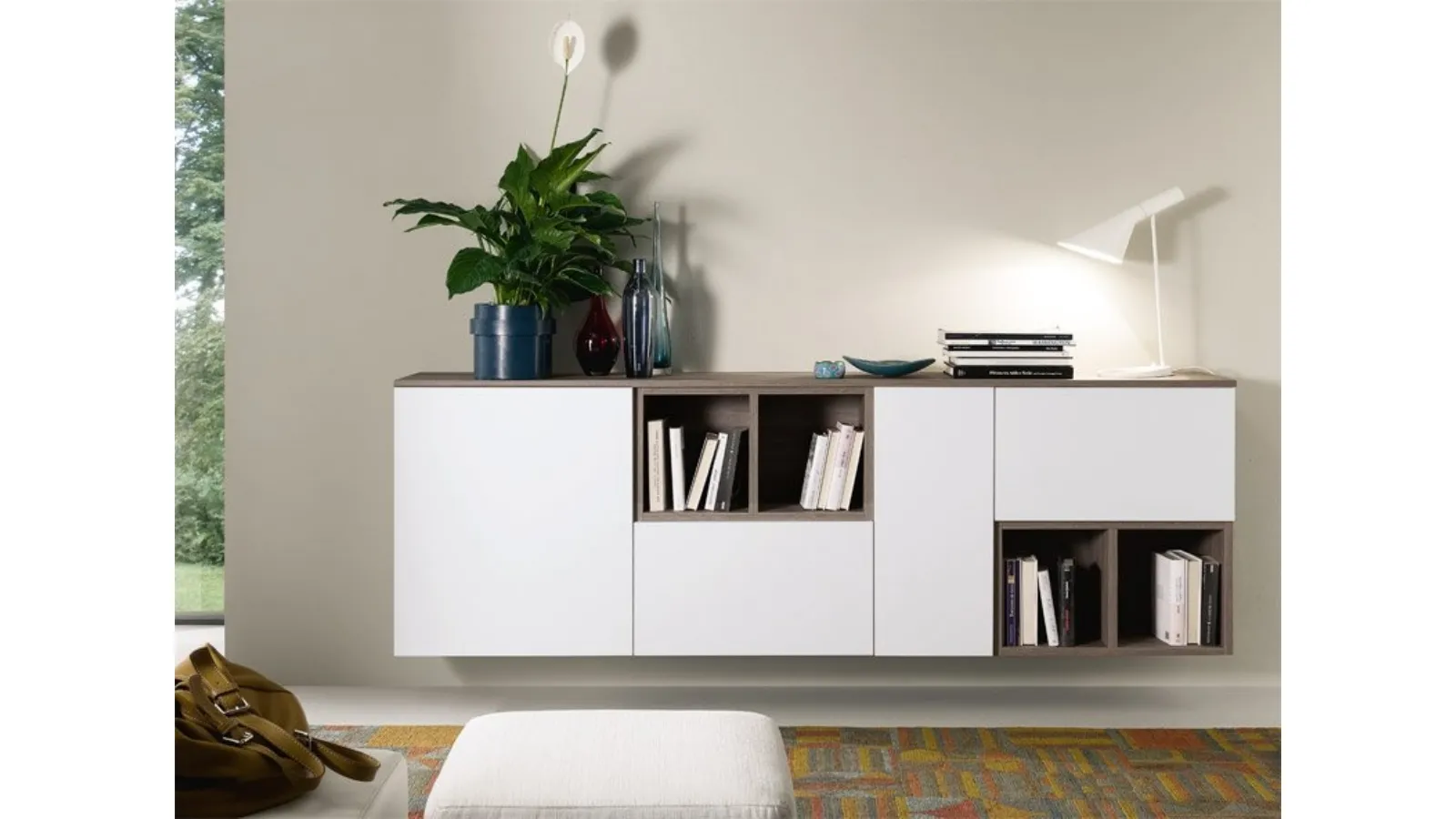 Even in a fairly small living room, these living room furniture pieces are able to solve various housing issues, ensuring various possibilities for custom characterization. Modern sideboards, including the model visible in the photo, enhance the living room or dining room with well-designed lines and great storage capacity. The hanging Sideboard Spot Irma Bianco di S75 in the image in melamine resolves the most particular style and space needs, furnishing the living area with functionality and a unique design. If you desire a space-saving living room furniture model, discover a rich catalog of Home Furniture from the best manufacturers in-store and contact us for information and quotes. If you are a furniture enthusiast and always stay updated on design evolution in the industry, our showroom is the right place for you.