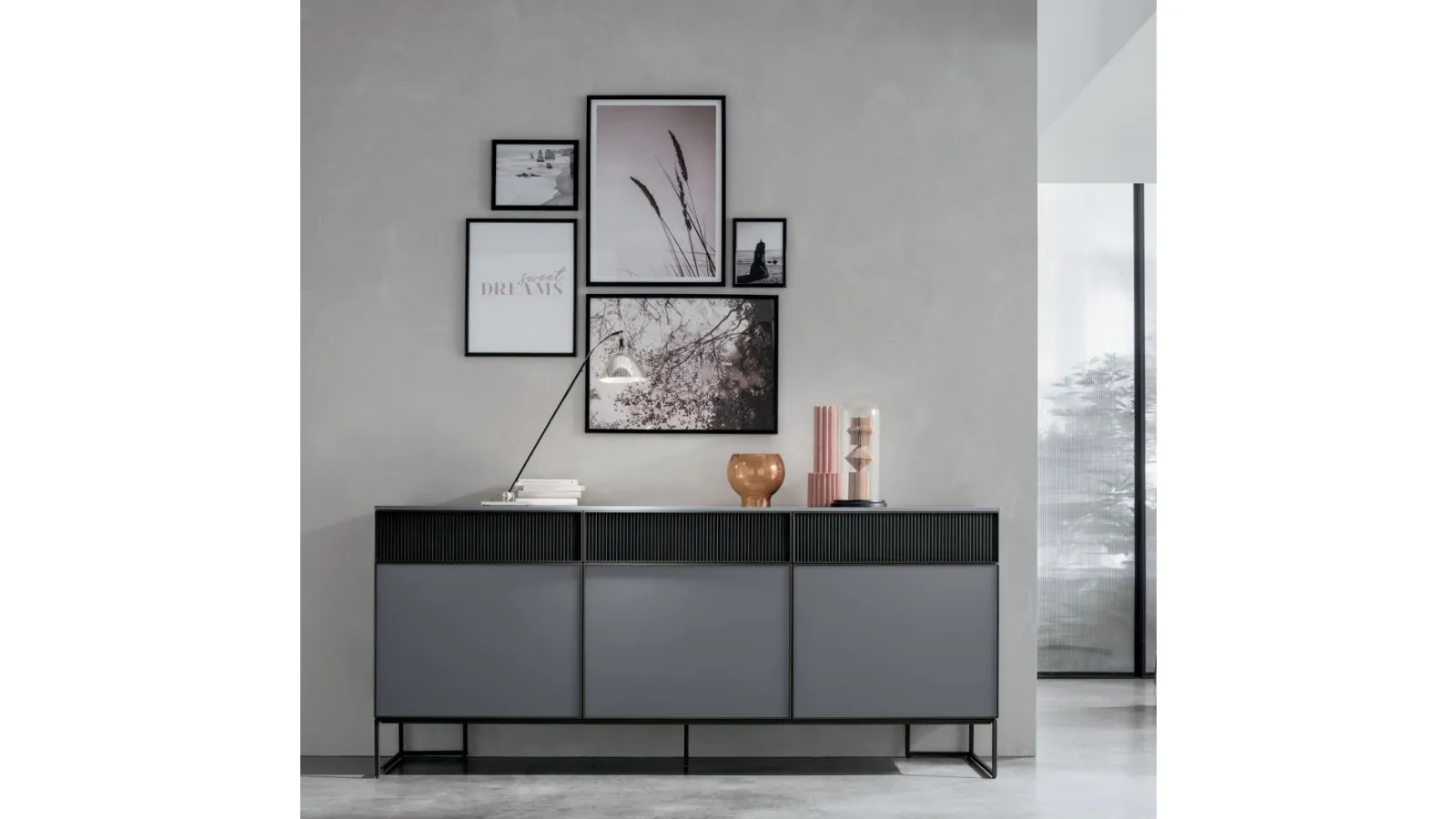 The sideboard available here belongs to our rich line of home furnishings in matt lacquer for the living area