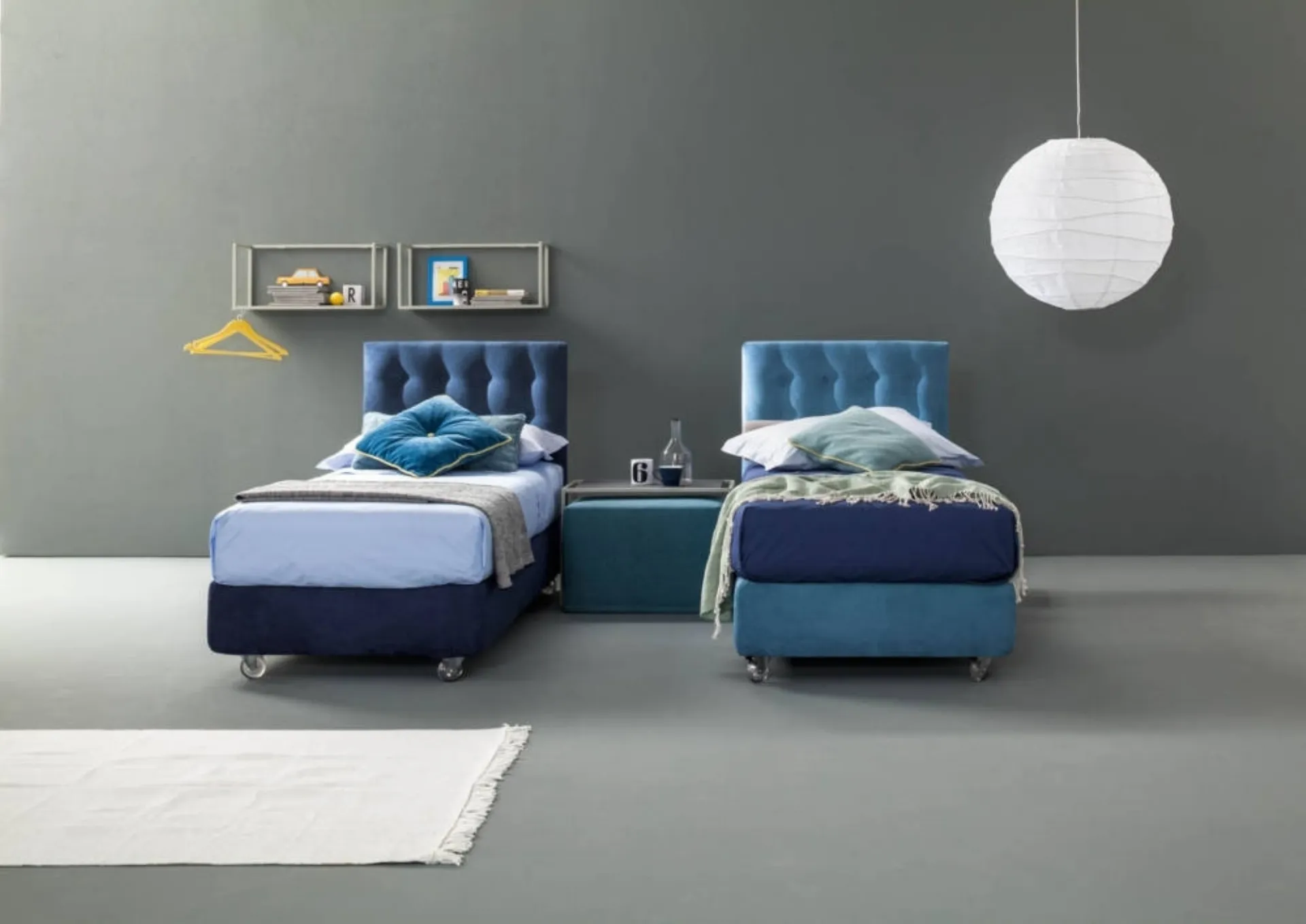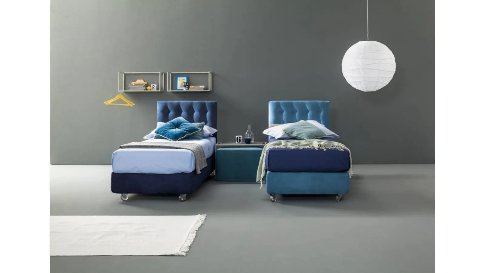 Get information about the upholstered single bed Aster by Bside in the image: it is ideal for recreating a cozy, beautiful, and well-organized environment, perfect for your children. The upholstered single beds for children's rooms available at our store solve any space and practicality issues, while ensuring a unique style. A rich catalog of modern fabric beds awaits you: the Bside brand offers multiple versions of beds that always meet children's needs. Durable materials and eco-friendly paints characterize the brand's offerings: if the room is small, there are various available solutions, always able to combine ergonomics and safety.