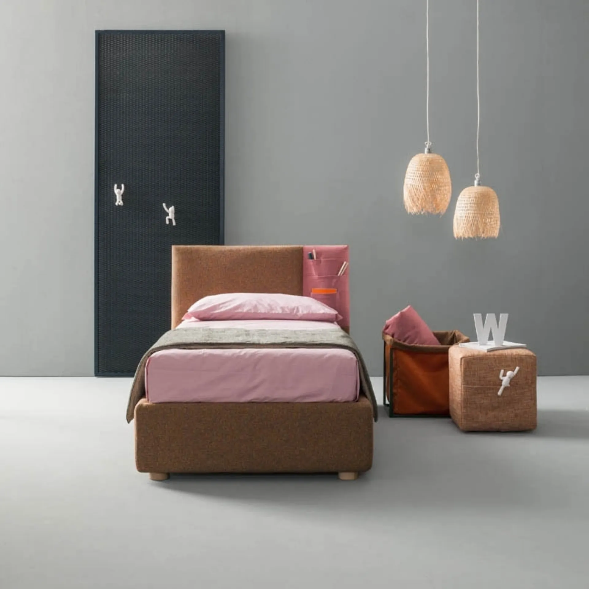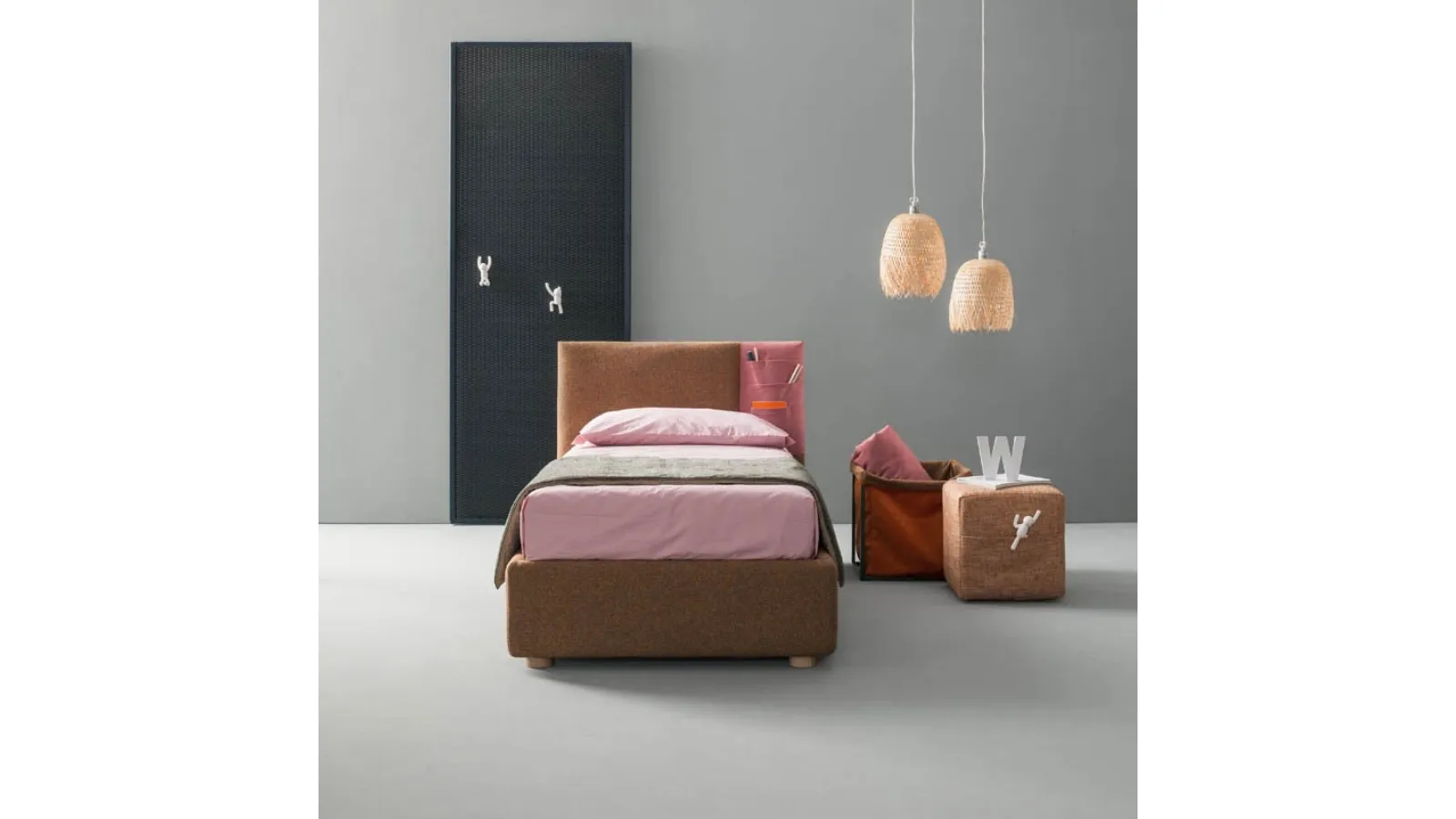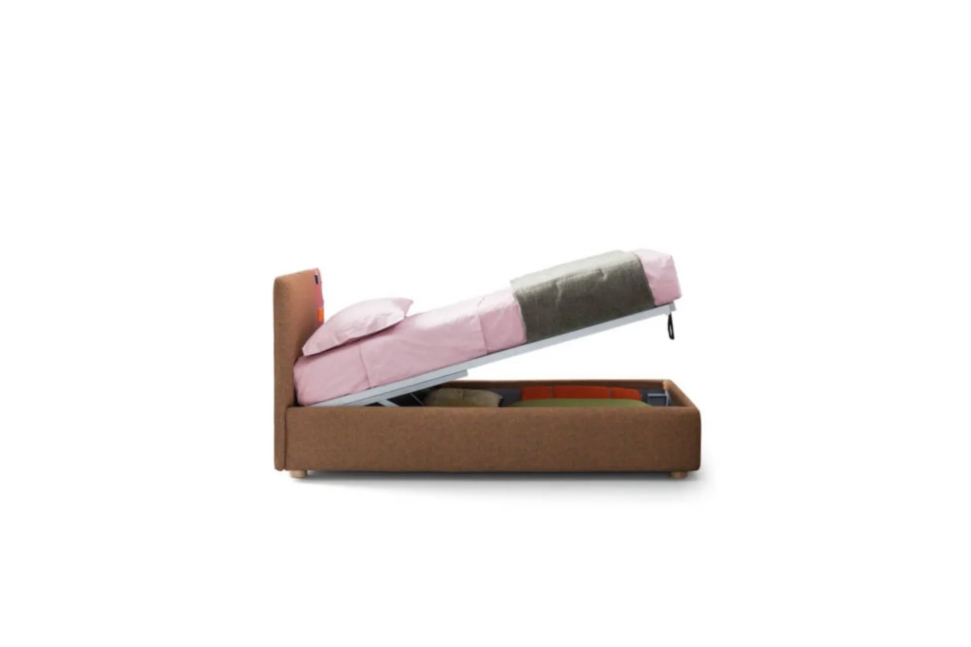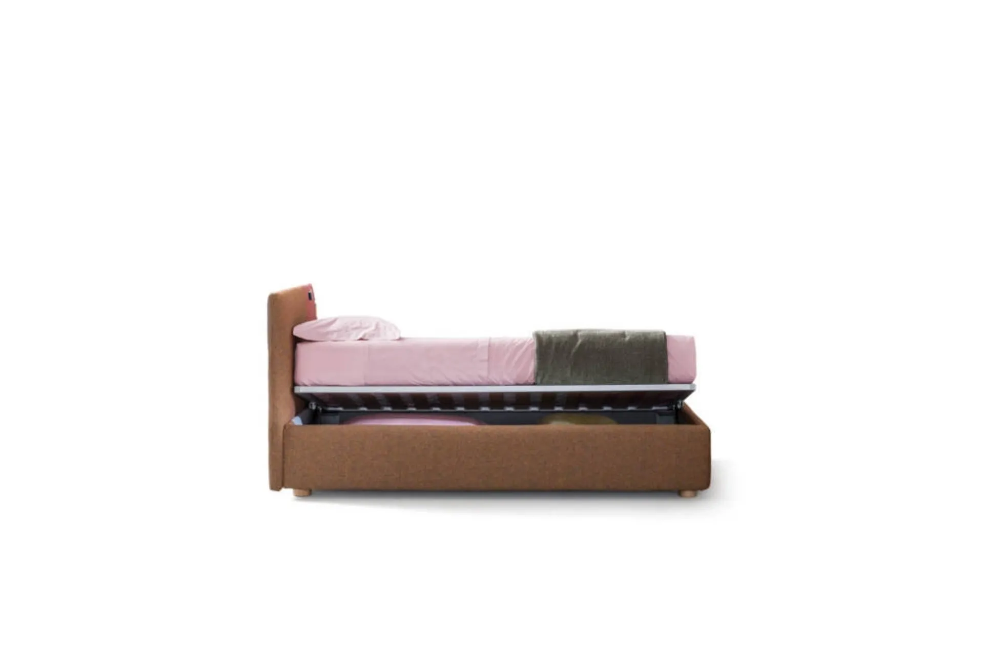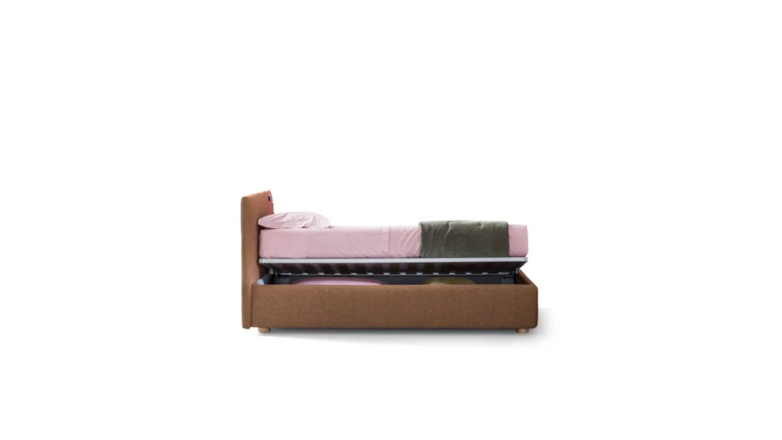 Do you need a single bed by Bside to complete the children's room? Here is the Bside Rift single bed that belongs to our line of storage beds. Learn more about the fabric model in the photo: contact us for any information by filling out the form below. A solution that meets the necessary safety guidelines for designing a junior space. The children's room should include every piece of furniture to ensure a welcoming environment, where modern beds like this one coexist.
